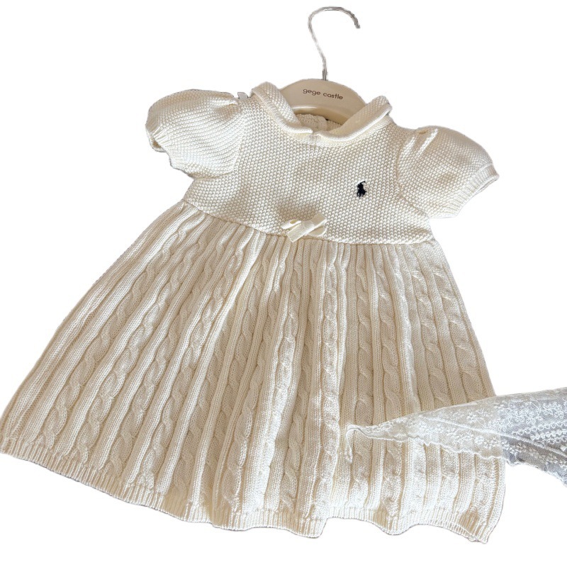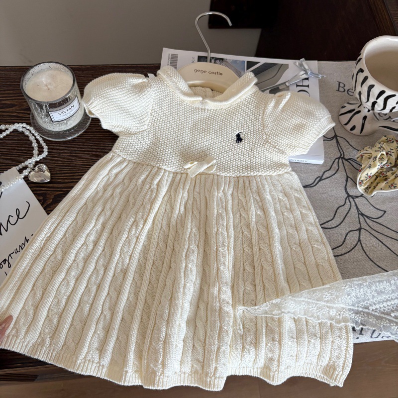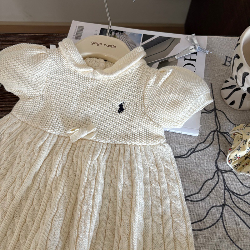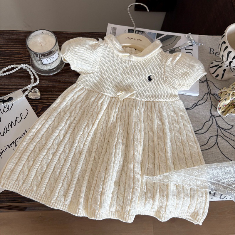한국 스타일 아동복 2025 새로운 여름 소녀 니트 원피스 어린이 대학 스타일 샤넬 스타일 짧은 소매 공주 원피스스토어 가기