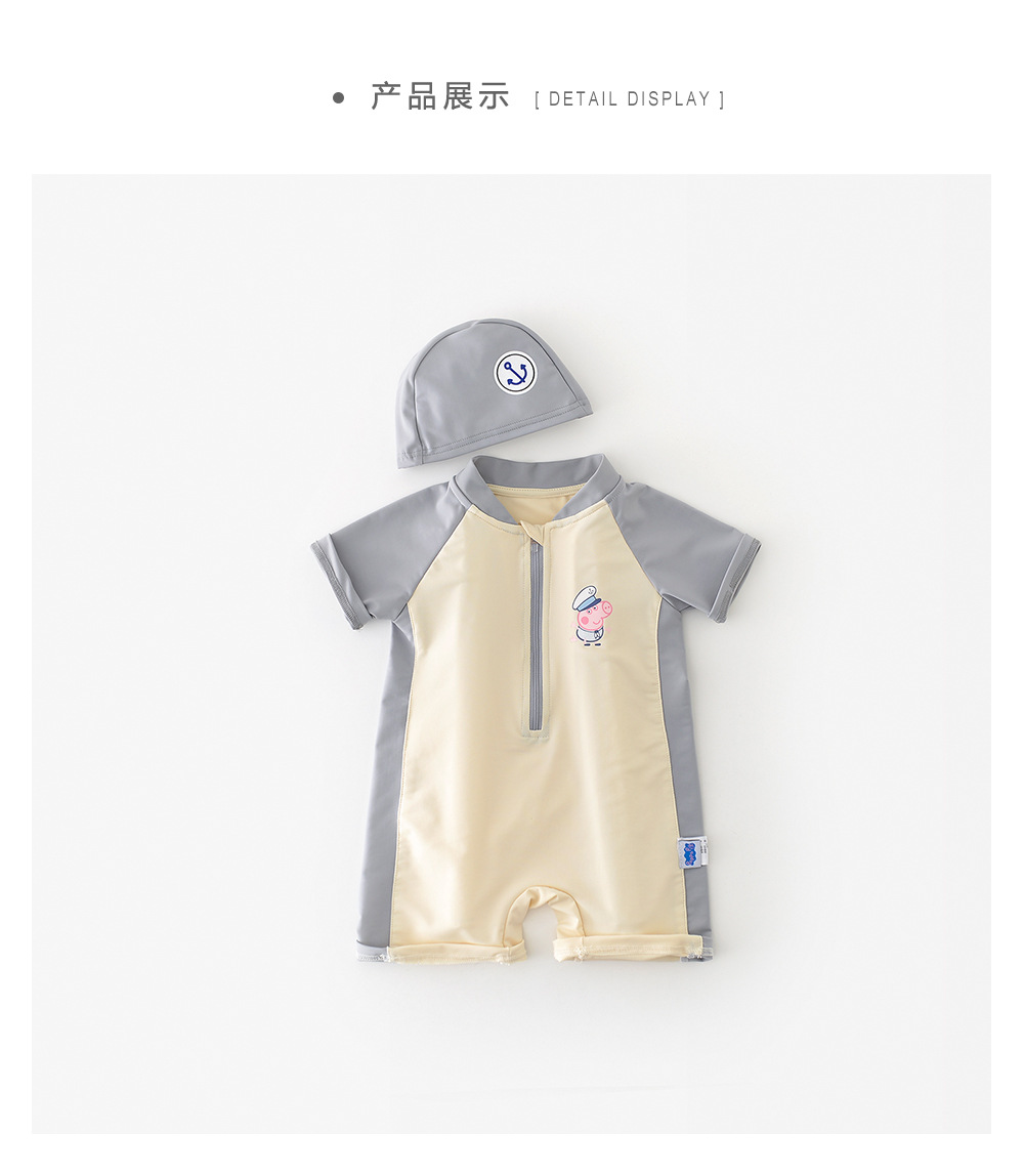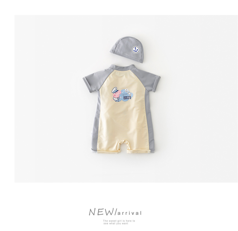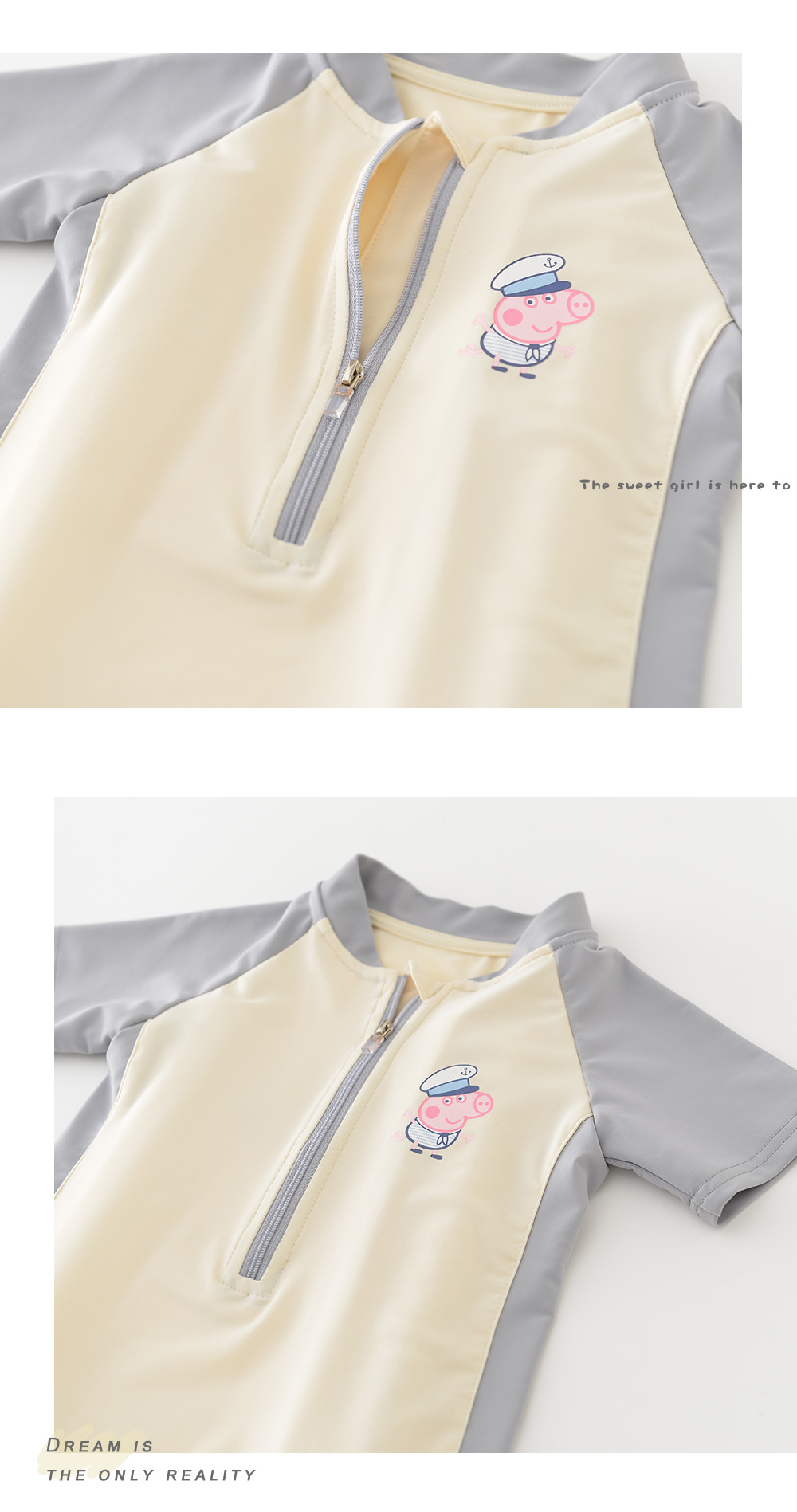 돼지 페이지 2025 여름 조지 후드 수영복 아기와 유아 지퍼 짧은 소매 점프 수트 등반 52145