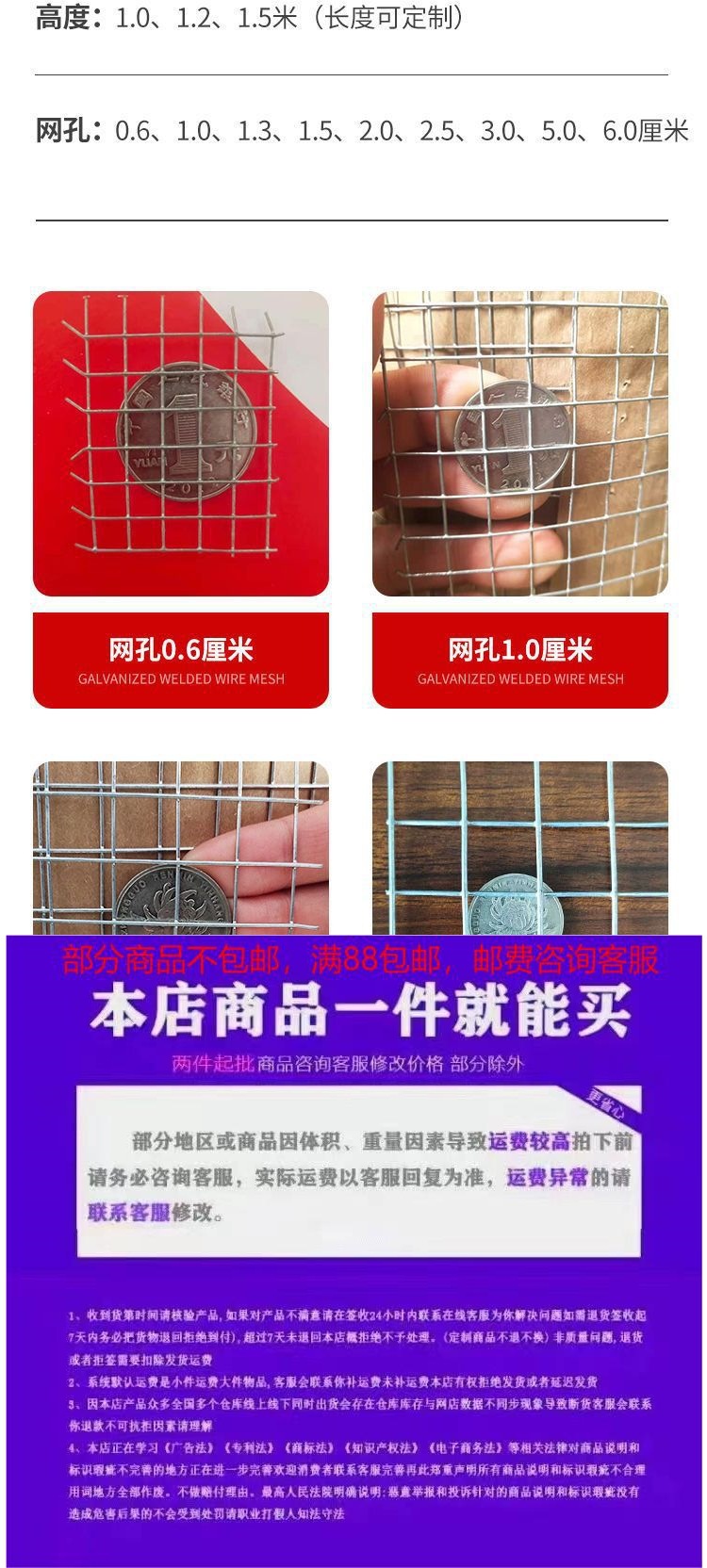 • 녹슬지 않는 아연 도금 철망 - 높이 0.5m 두께 1.0 메쉬 3cm 길이 1m