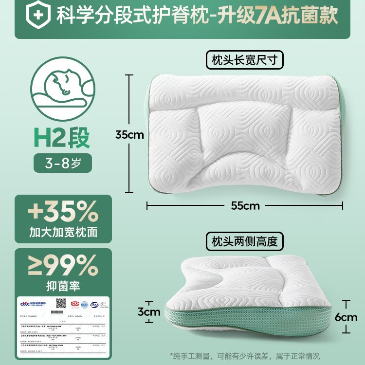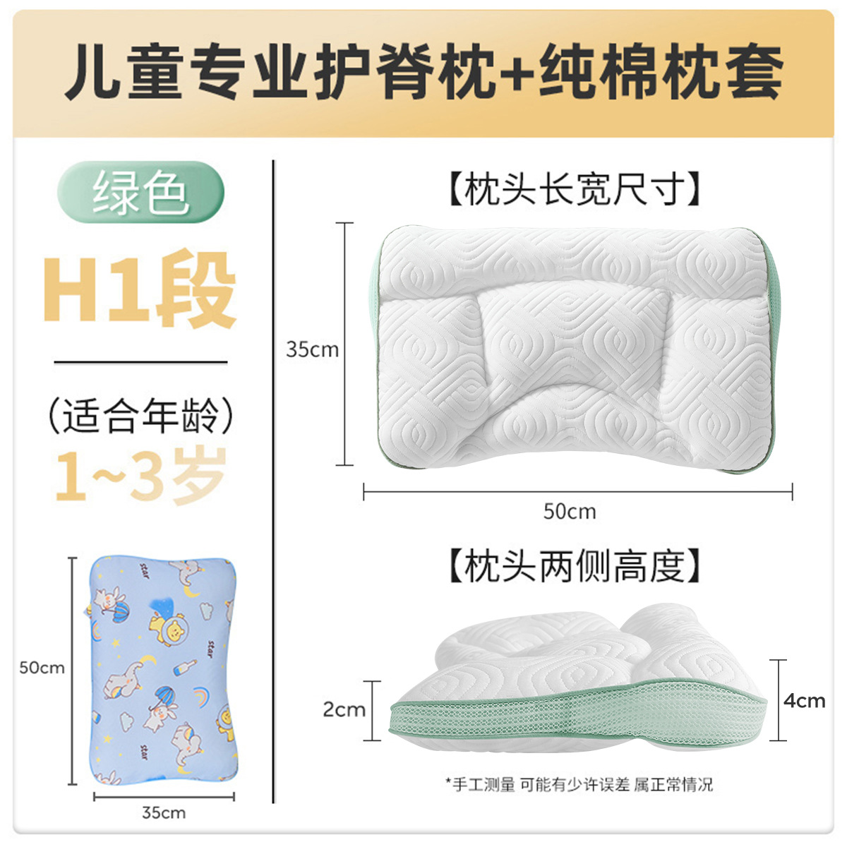 • [순면 베갯잇 포함] 섹션 H2 - 그린 [3-8세에게 적합, 베개 높이 3/6cm] 확대 및 넓어짐 7A 항균