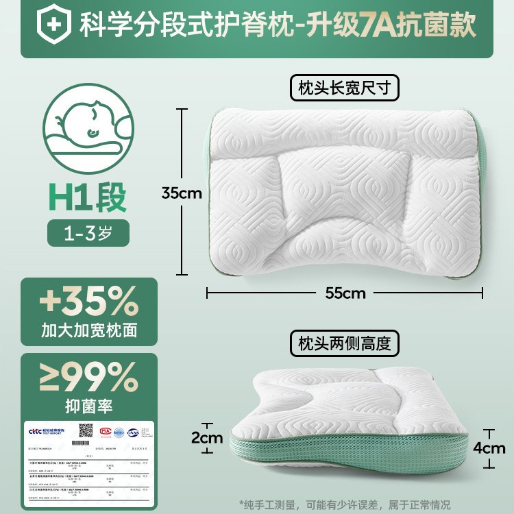 • H1 섹션 - 녹색 [1~3세, 베개 높이 2/4cm에 적합] 7A 항균