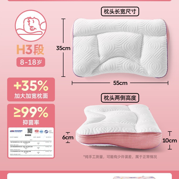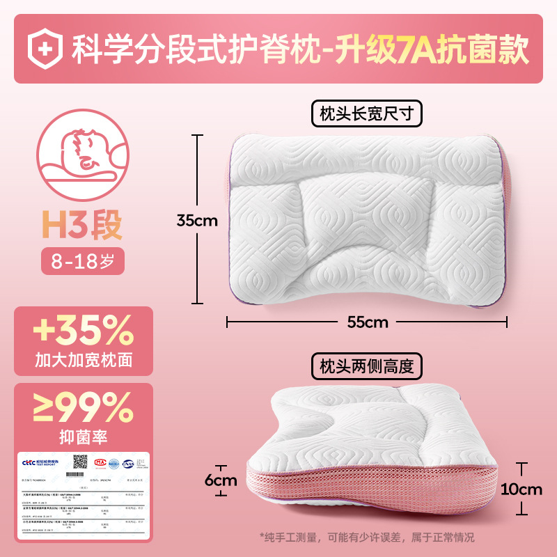 • [순면 베갯잇 포함] 섹션 H3 - 핑크 [8-18세에게 적합, 베개 높이 6/10cm] 확대 및 넓어짐 7A 항균