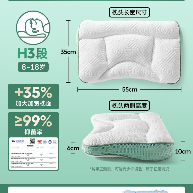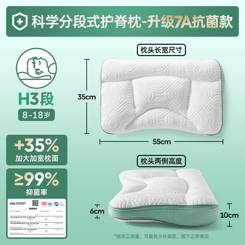 • [순면 베갯잇 포함] 섹션 H3 - 그린 [8-18세에게 적합, 베개 높이 6/10cm] 확대 및 넓어짐 7A 항균