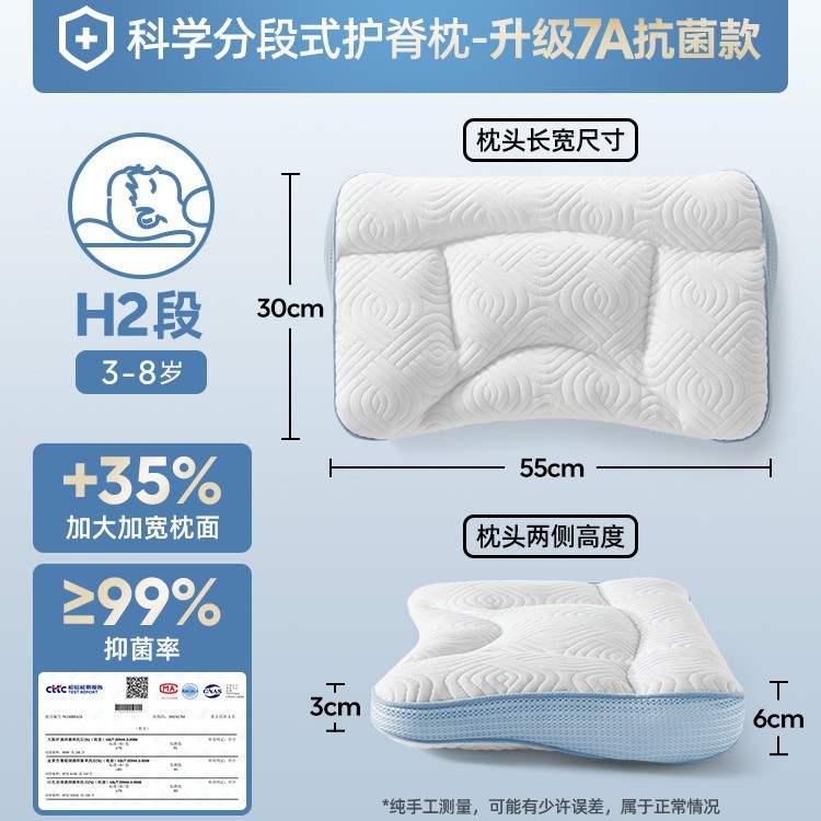 • H2 섹션 - 파란색 [3-8세에게 적합, 베개 높이 3/6cm] 확대 및 넓어짐 7A 항균