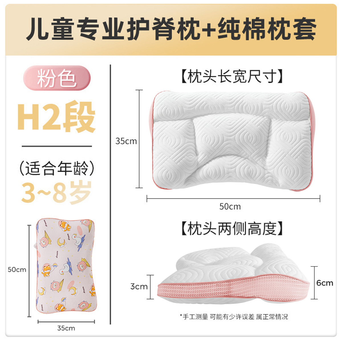 • [순면 베갯잇 포함] H2 섹션 - 핑크 [3-8세에게 적합, 베개 높이 3/6cm] 확대 및 넓어짐 7A 항균
