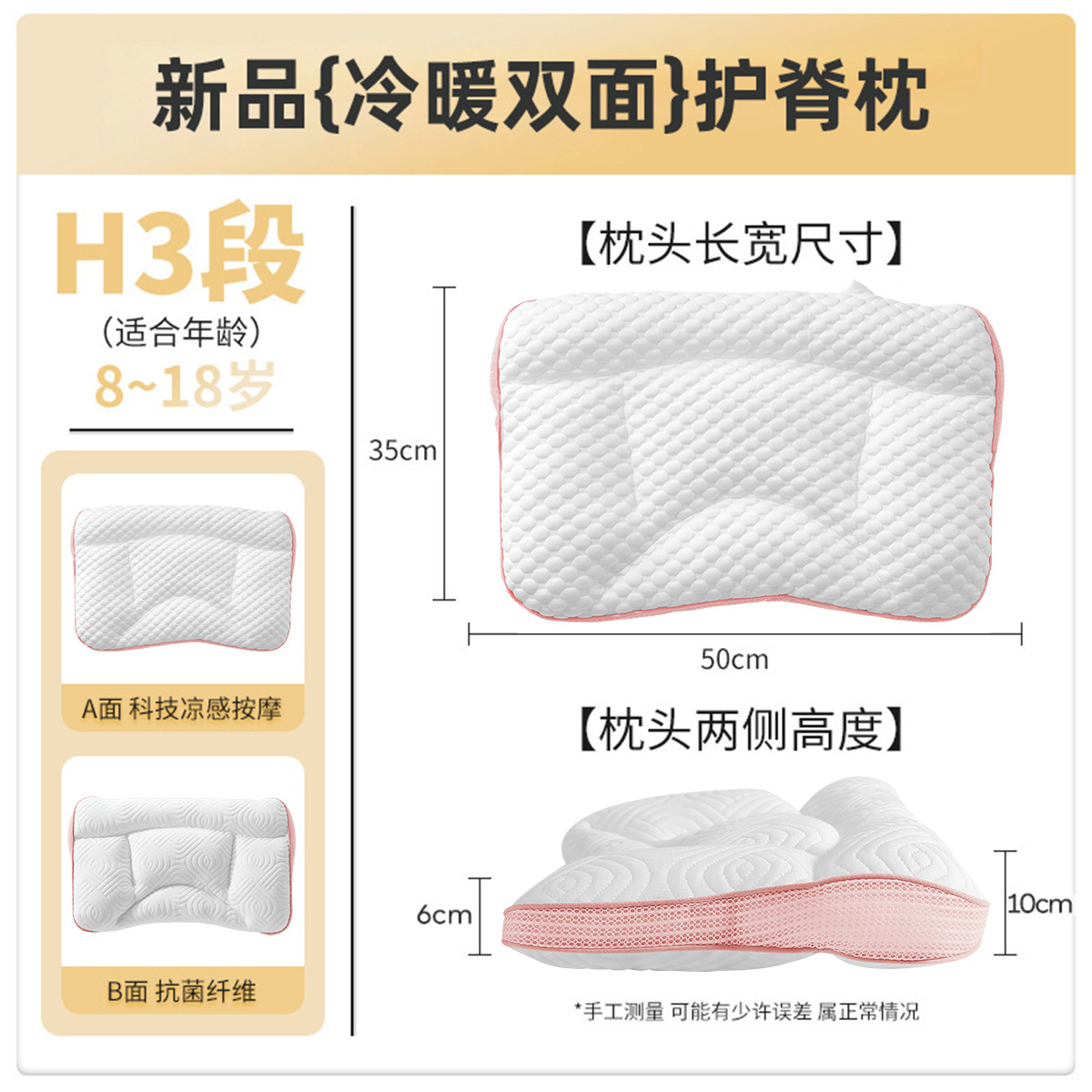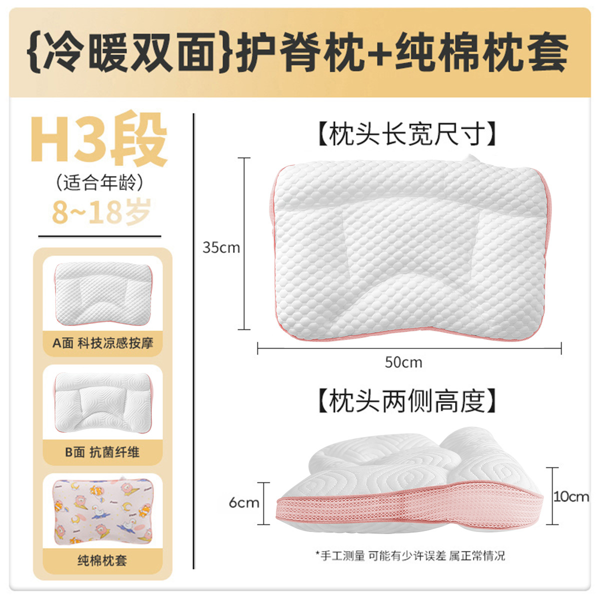 • [순면 베개 커버 포함] 섹션 H3 - 핑크 [8-18세에게 적합, 베개 높이 6/10cm] 따뜻하고 차가운 양면 7A 항균