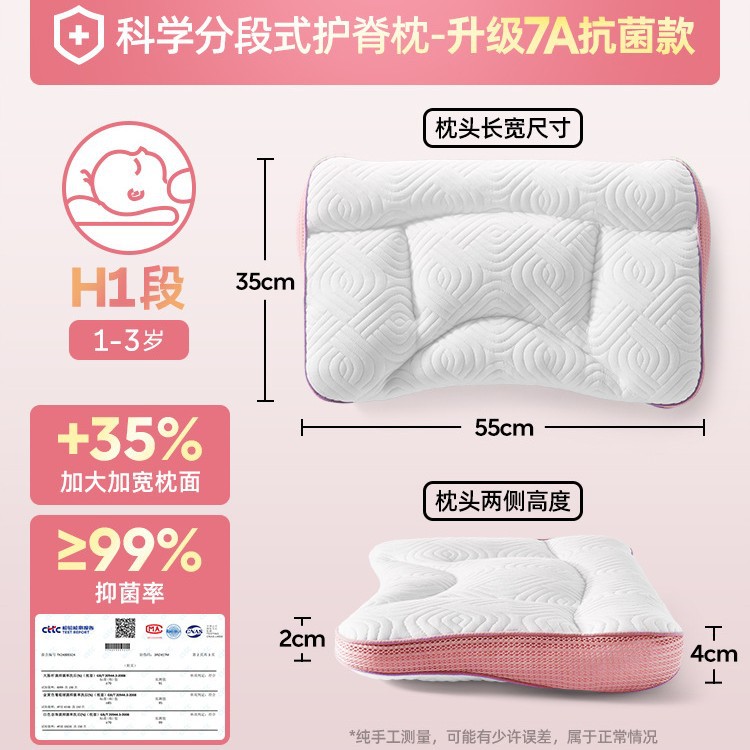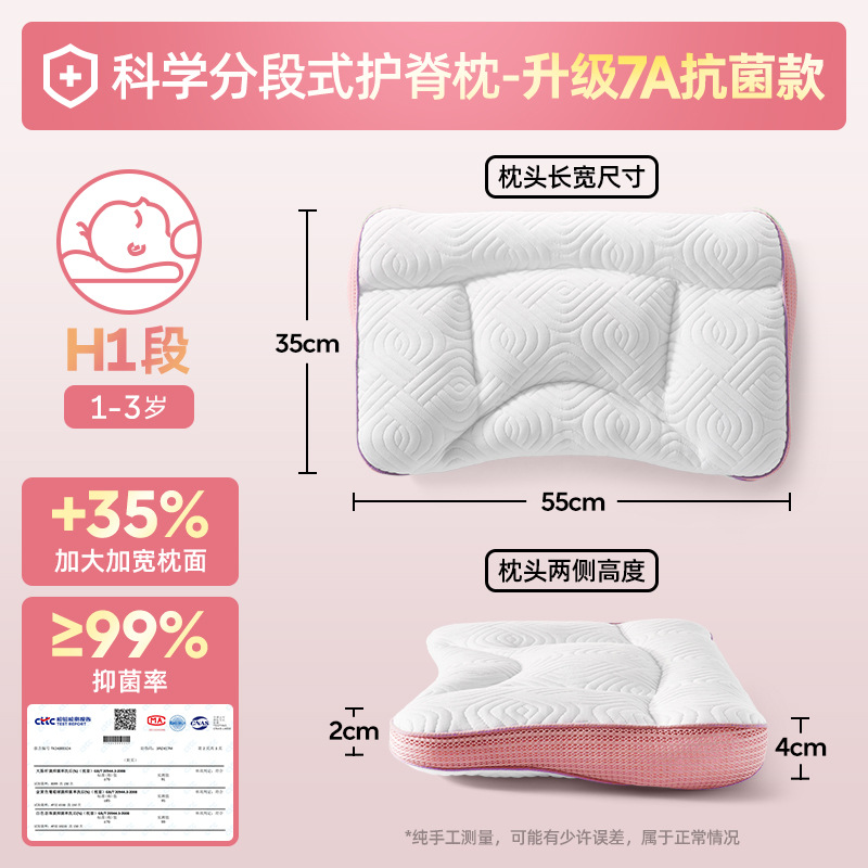 • H1 섹션 - 핑크 [1-3세에게 적합, 베개 높이 2/4cm] 확대 및 넓어짐 7A 항균