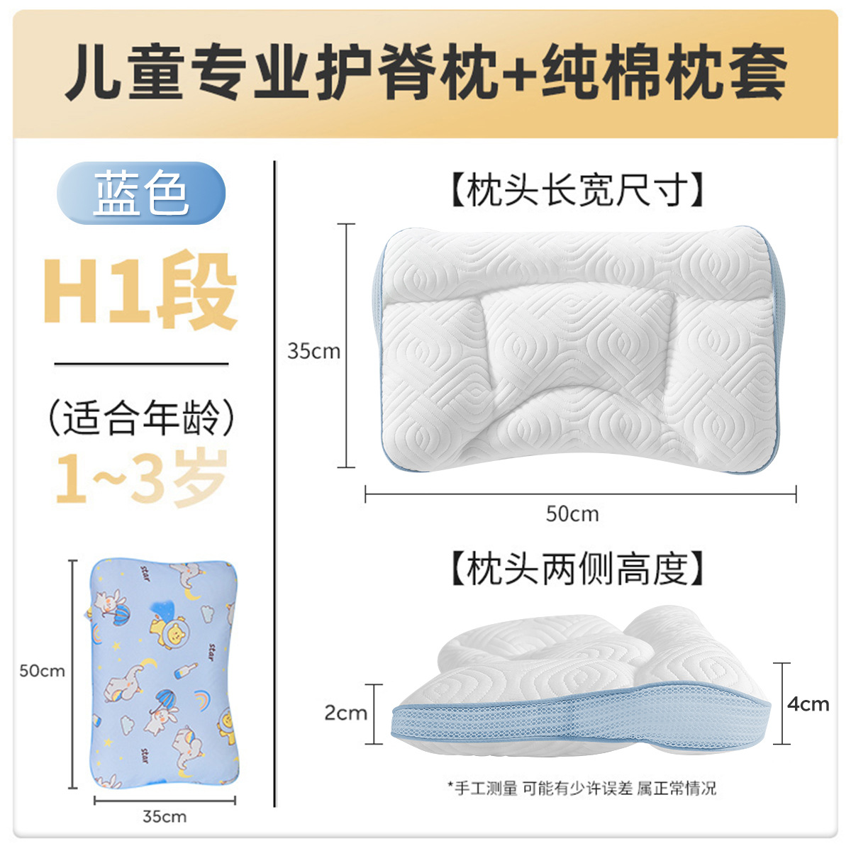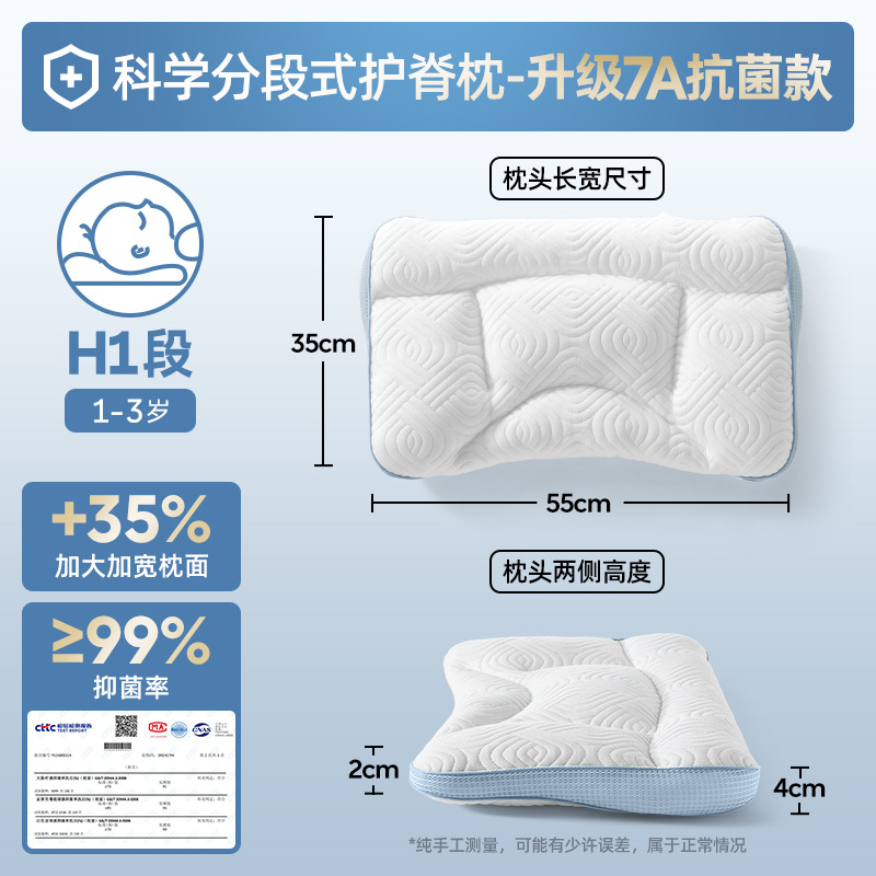 • [순면 베갯잇 포함] 섹션 H1 - 블루 [1-3세에게 적합, 베개 높이 2/4cm] 확대 및 넓어짐 7A 항균