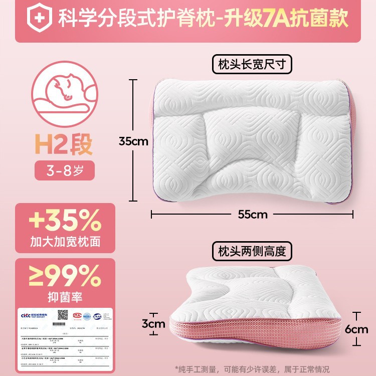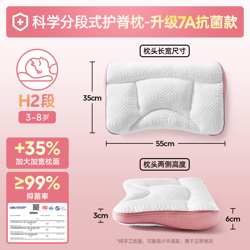 • H2 섹션 - 핑크 [3-8세, 베개 높이 3/6cm에 적합] 확대 및 넓어짐 7A 항균