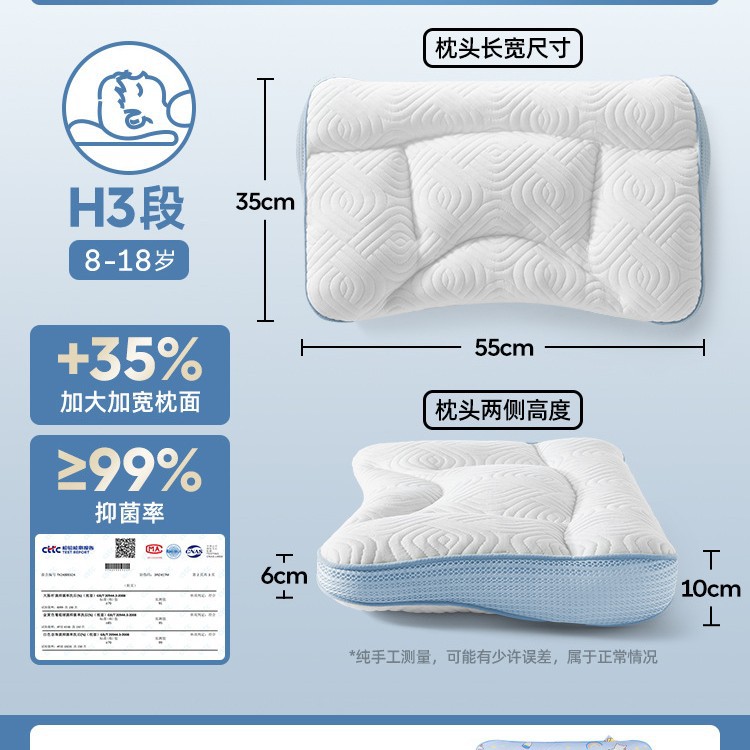 • [순면 베갯잇 포함] 섹션 H3 - 블루 [8-18세에게 적합, 베개 높이 6/10cm] 확대 및 넓어짐 7A 항균