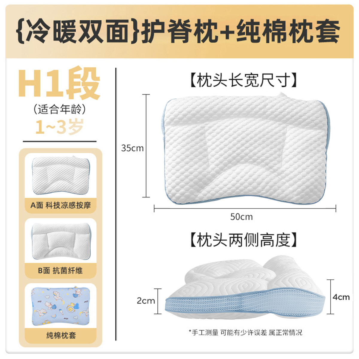• [순면 베갯잇 포함] H2 섹션 - 블루 [3-8세에게 적합, 베개 높이 3/6cm] 따뜻하고 차가운 양면 7A 항균