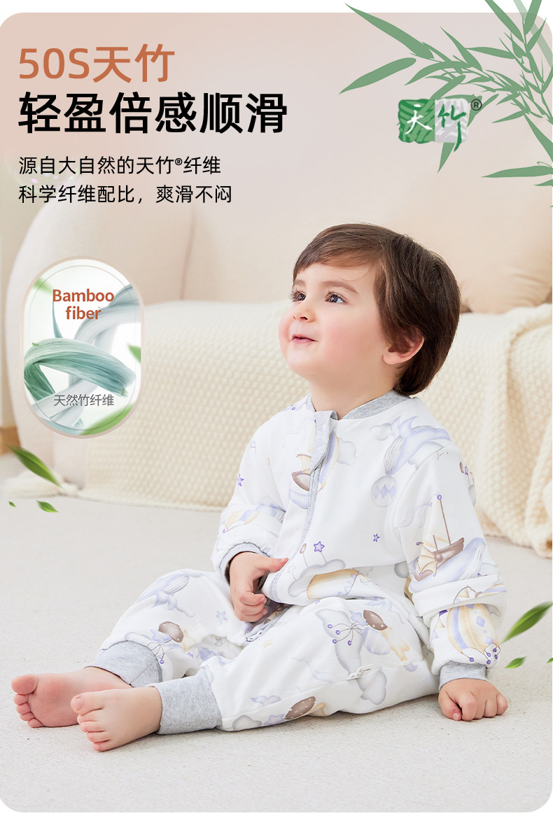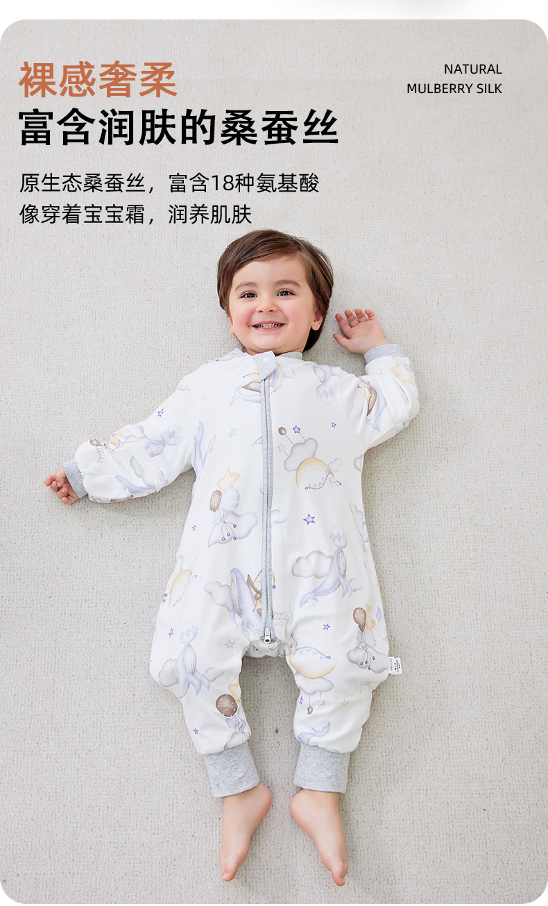 Tadahou 아기 침낭 봄과 가을 대나무 면화 아기 다리 분할 어린이 여름 더블 레이어 뽕나무 실크 안티 킥 침낭