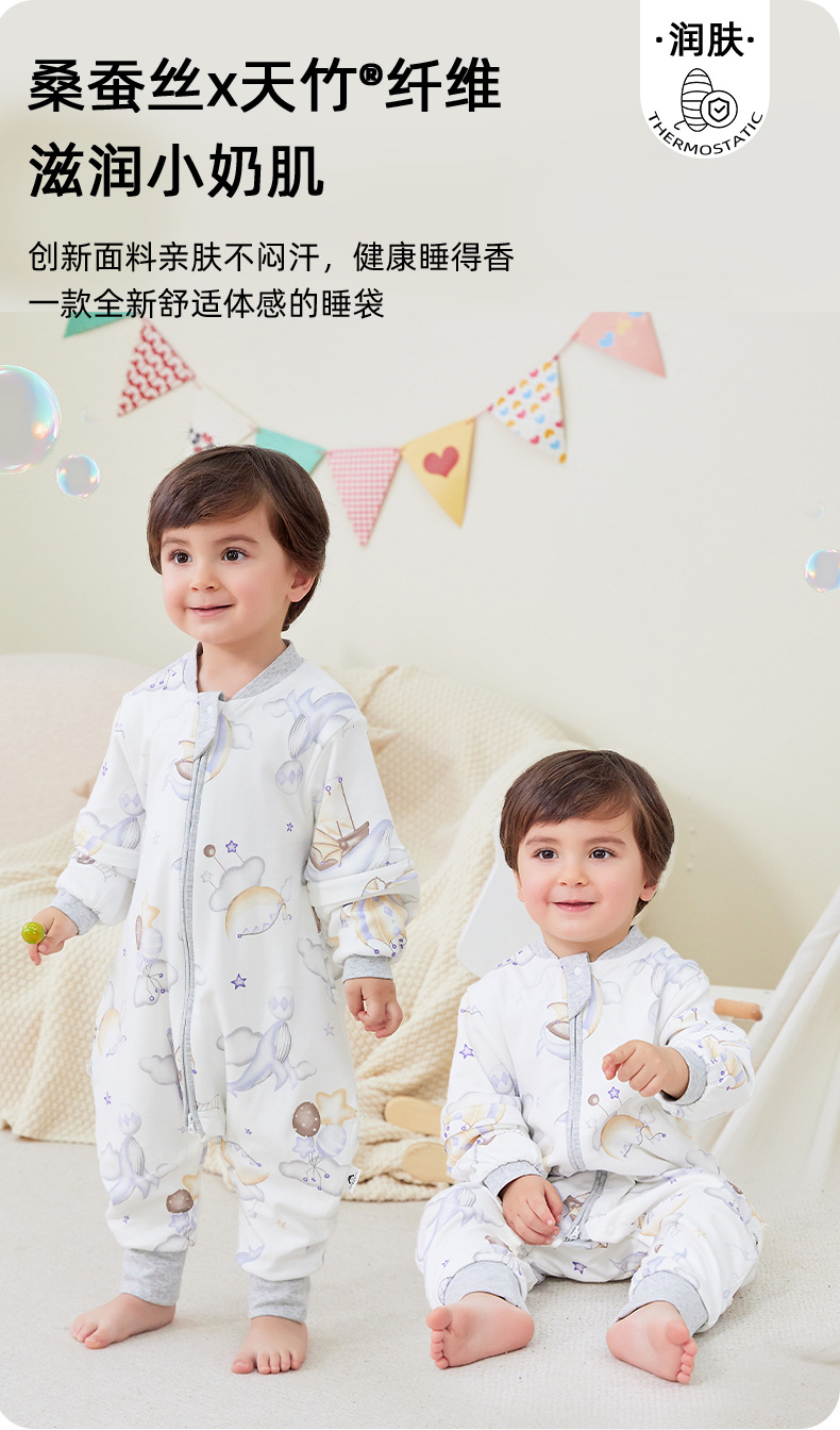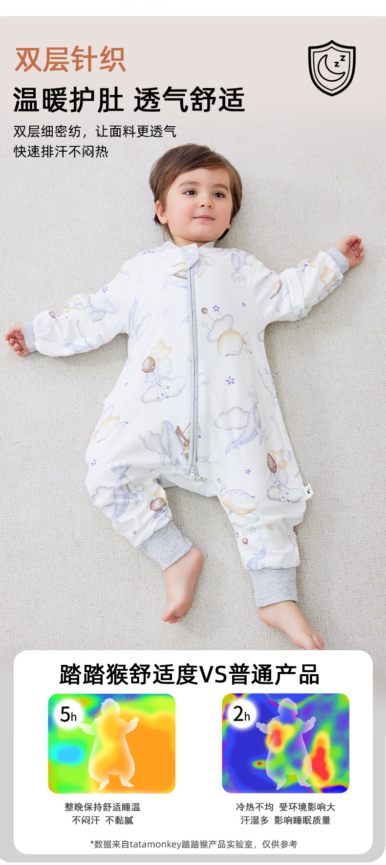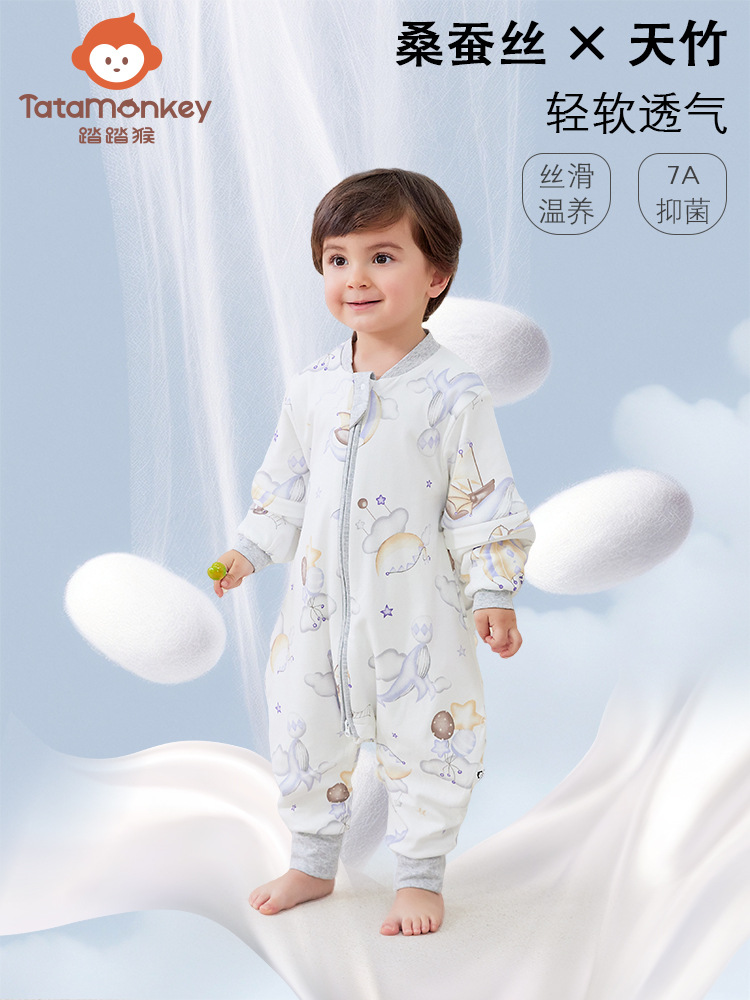 Tadahou 아기 침낭 봄과 가을 대나무 면화 아기 다리 분할 어린이 여름 더블 레이어 뽕나무 실크 안티 킥 침낭스토어 가기