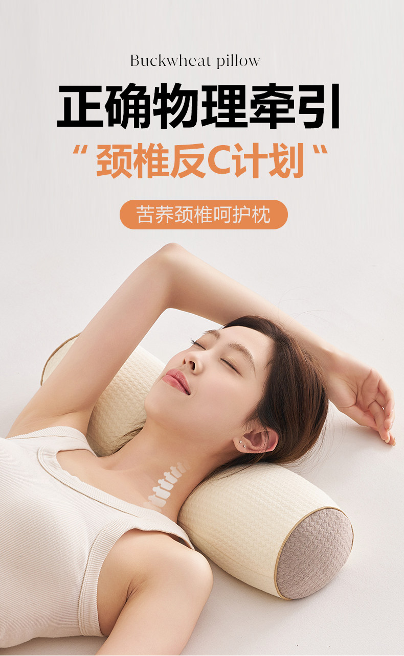 경추 견인 베개 메밀 껍질 충전 목 보호 수면 원통형 하드 베개 코어 드롭 배송