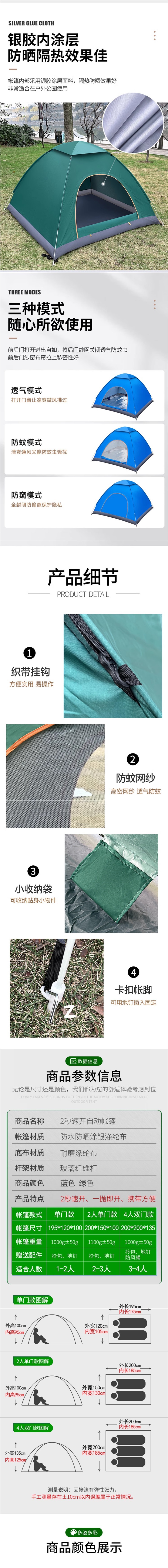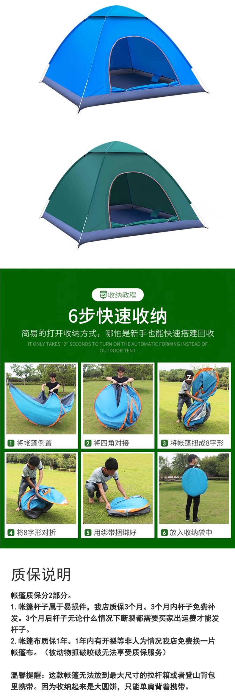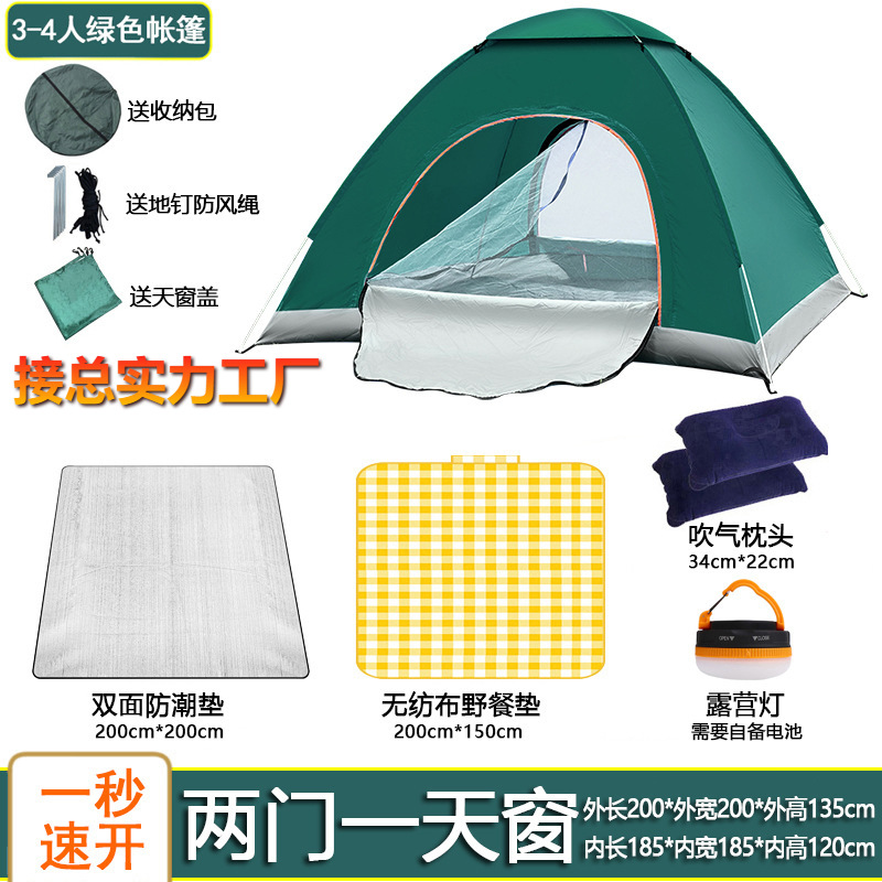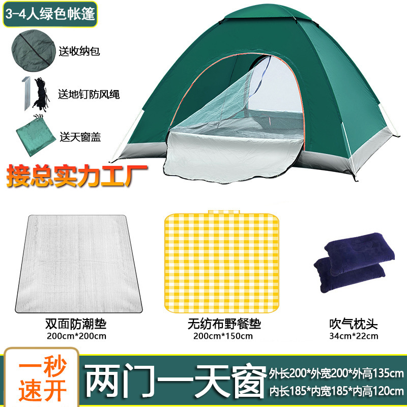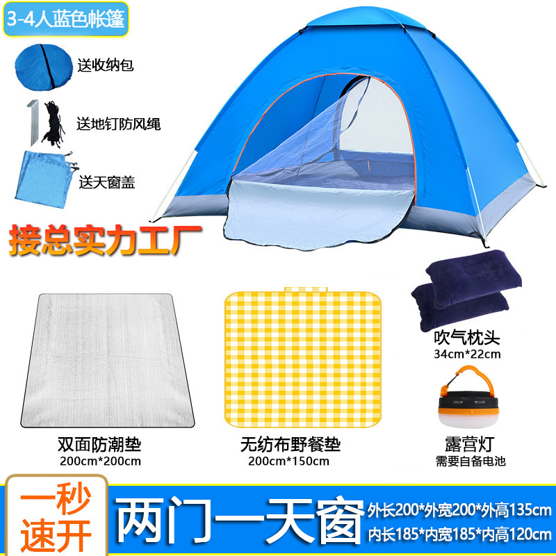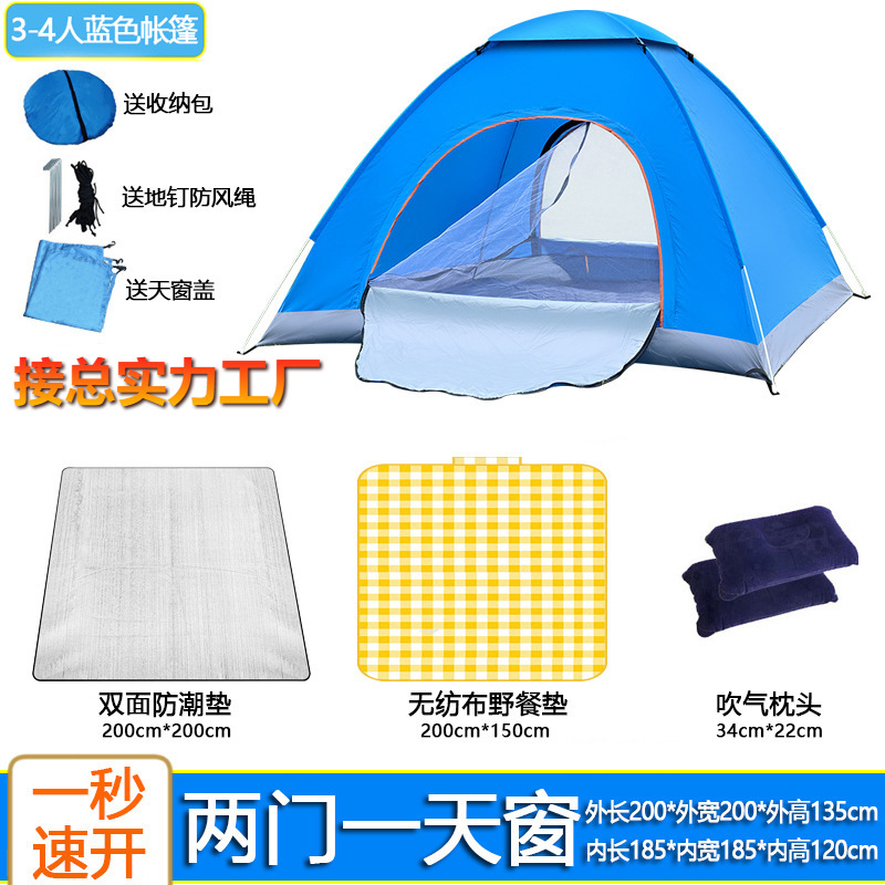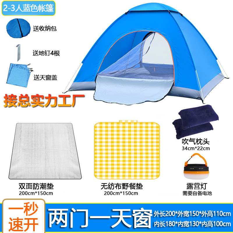 텐트 야외 접이식 휴대용 자동 캠핑 하룻밤 두 배 두꺼운 비방과 모기 방지 어린이 캠핑 도매스토어 가기