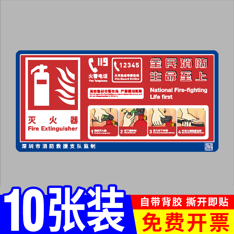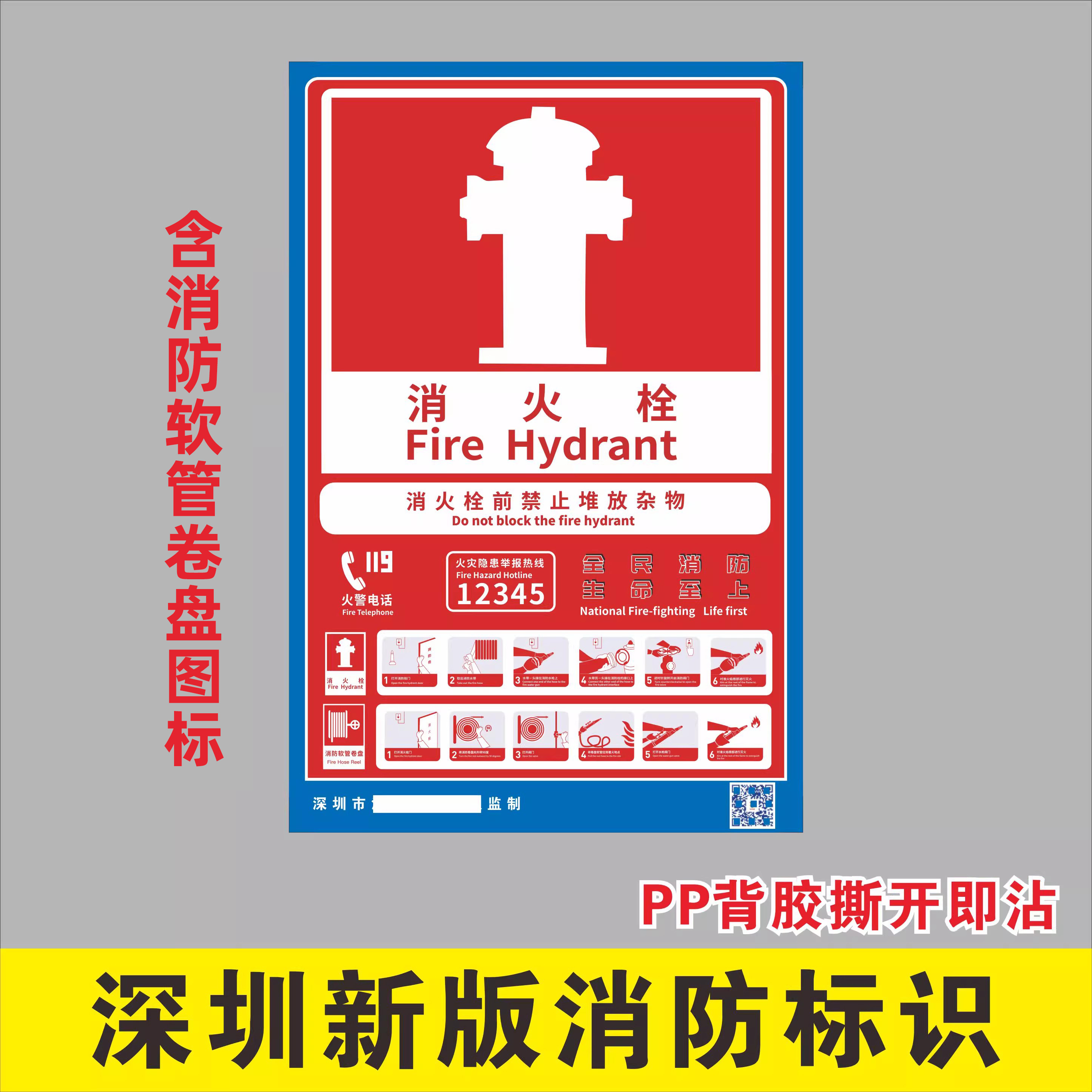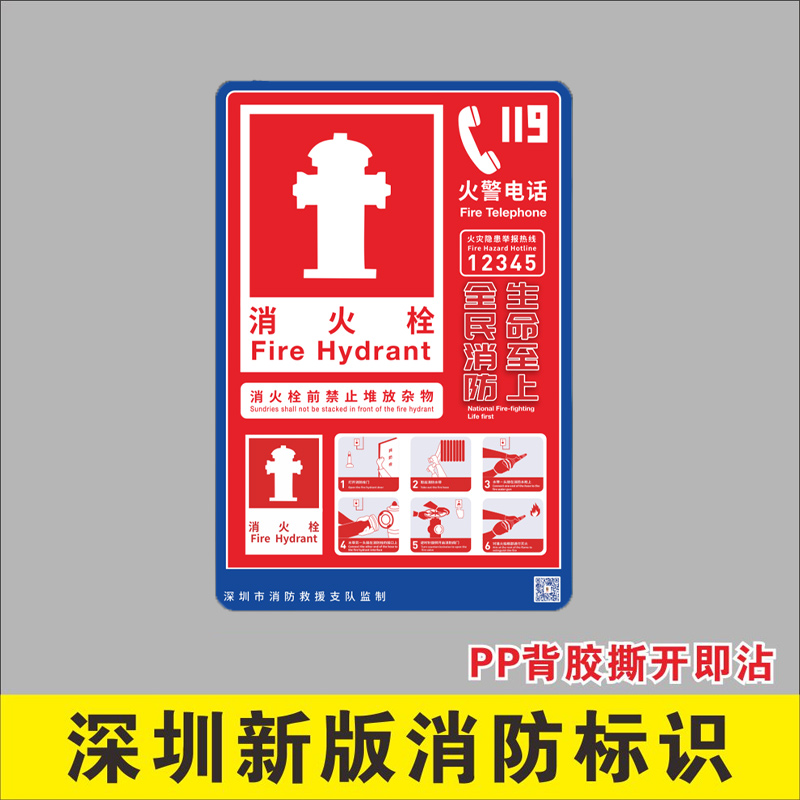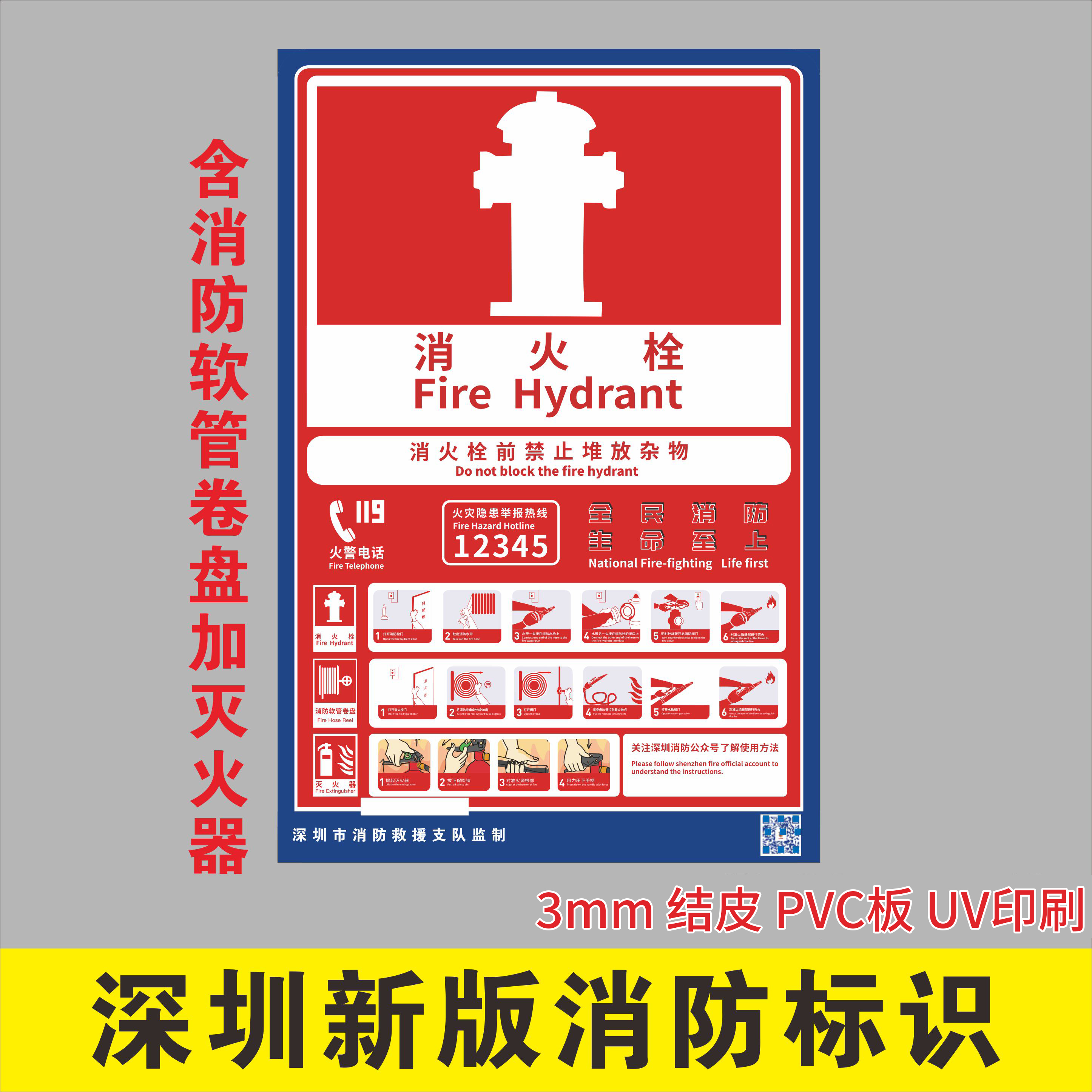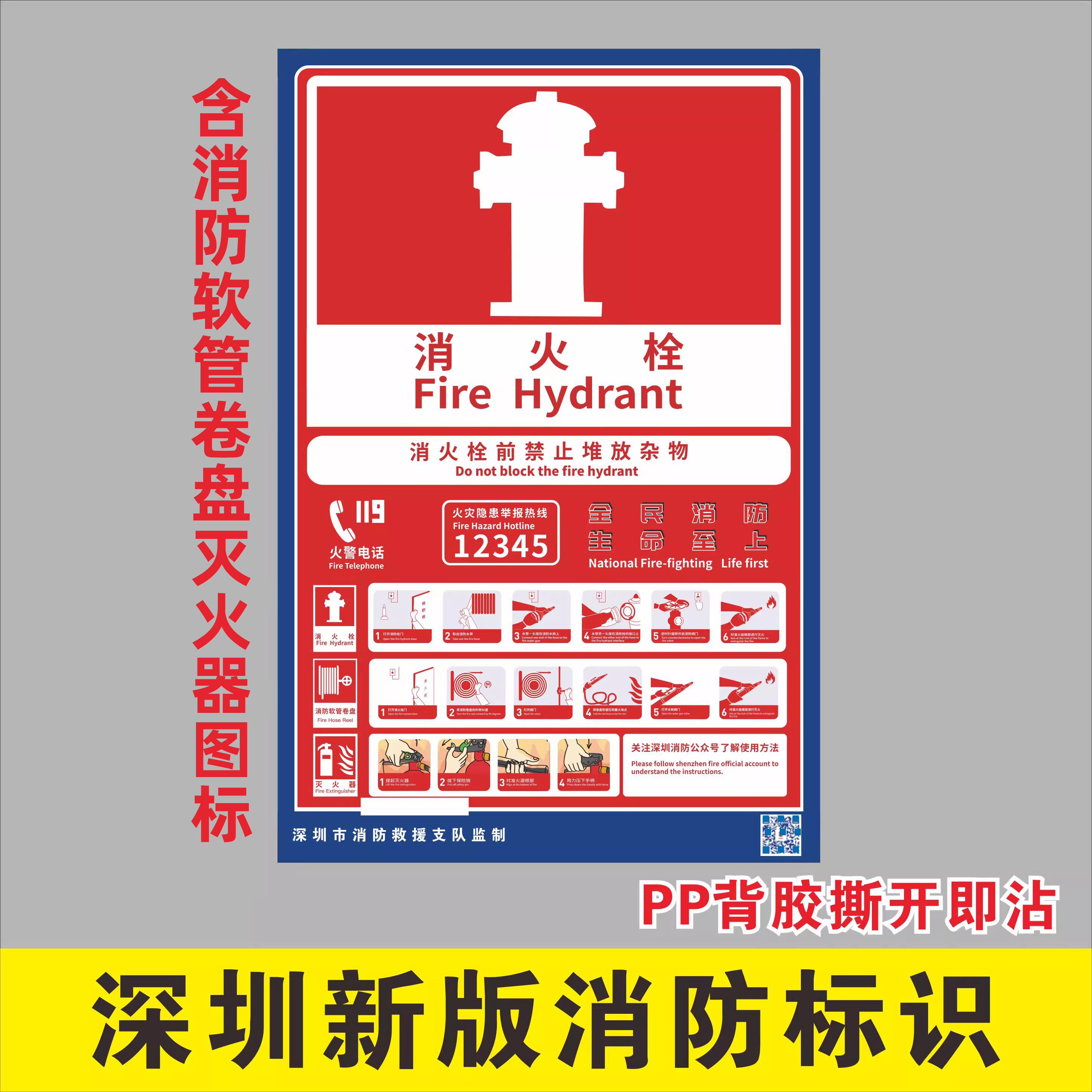 深圳消防标识牌标识贴 定制工厂消火栓灭火器使用说明消防栓贴纸