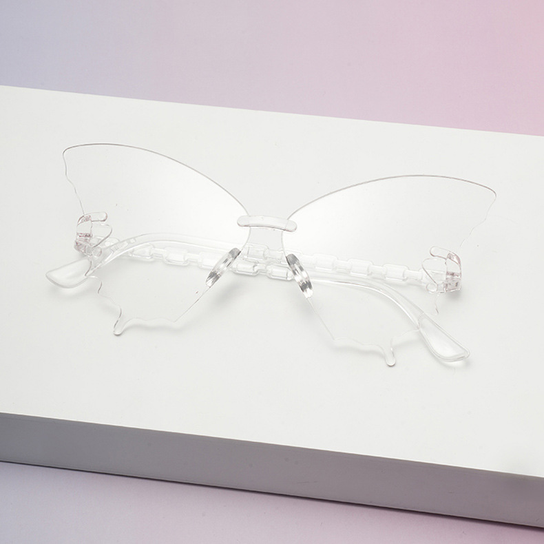 2025 새로운 나비 안경 일체형 렌즈 무테 선글라스 크로스보더 맞춤형 젤리 컬러 일체형 트렌디 선글라스스토어 가기