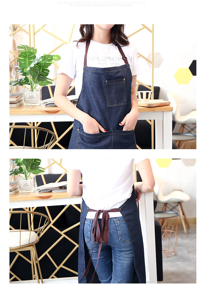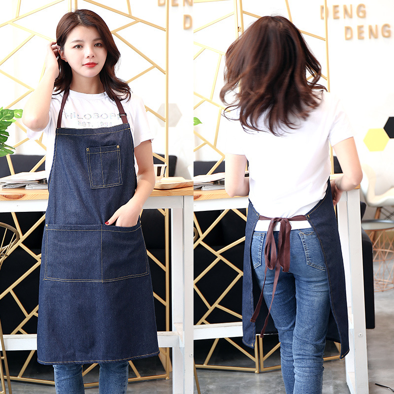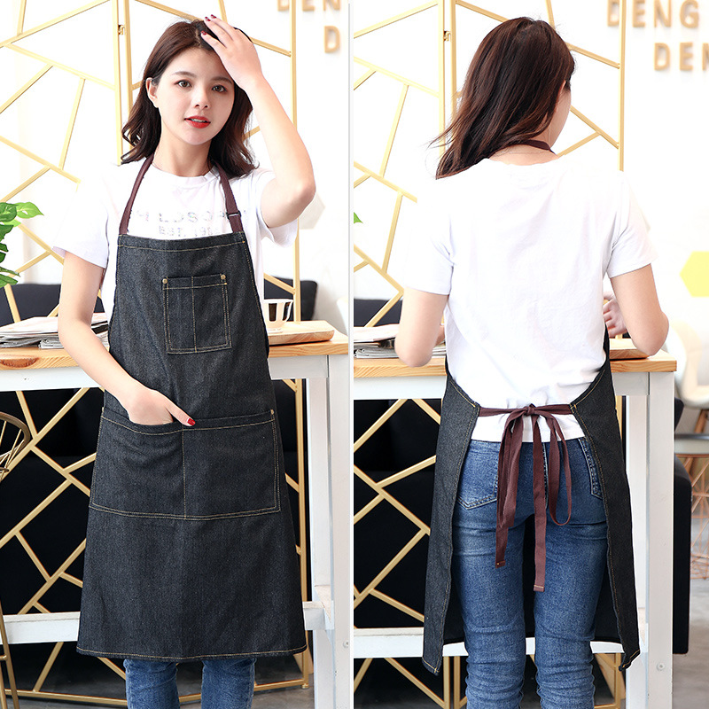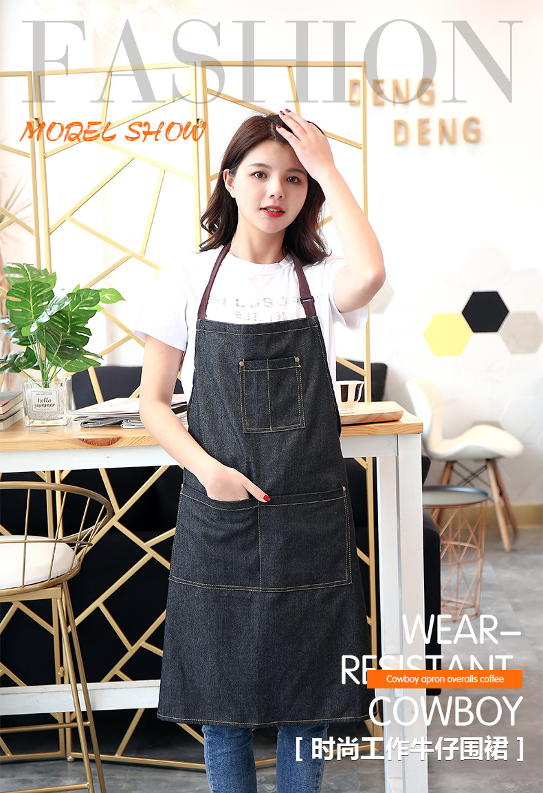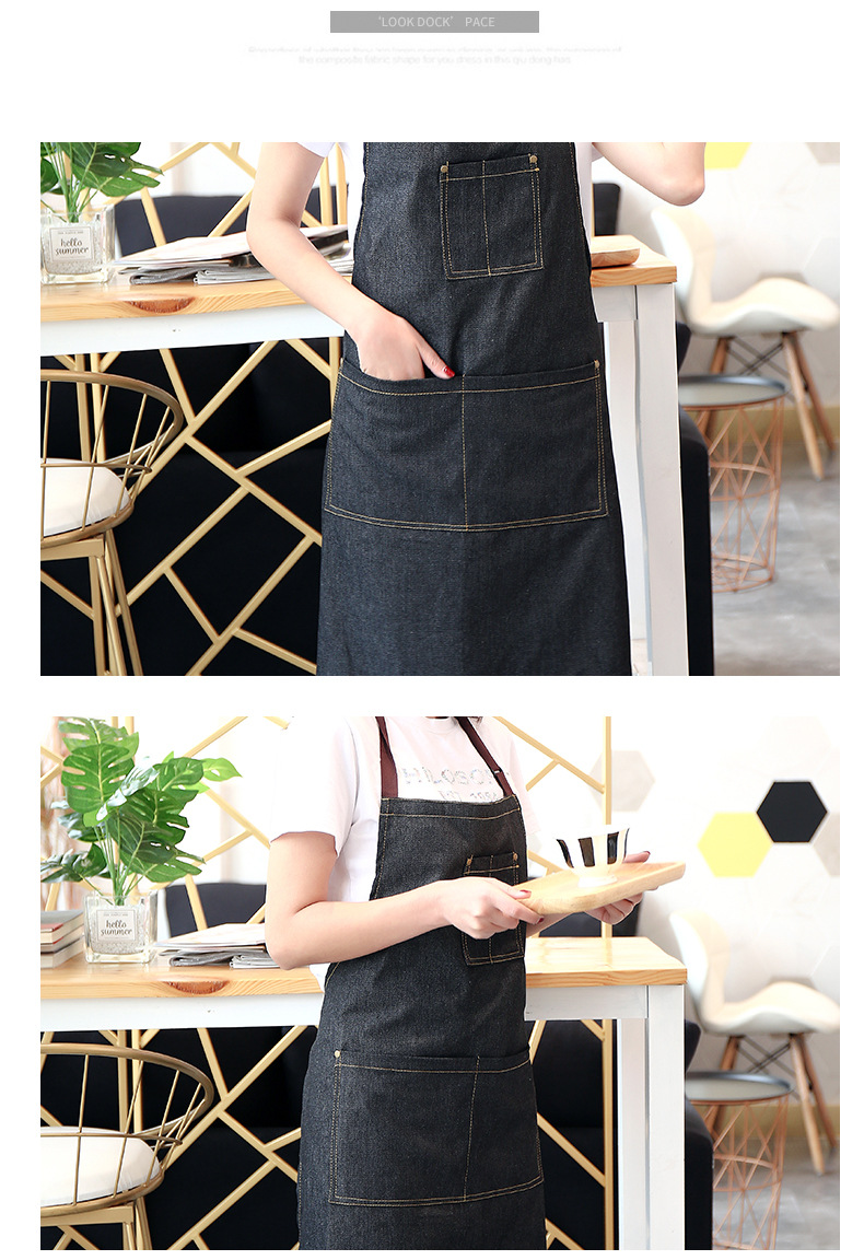 패션 캔버스 데님 앞치마 매니큐어 베이킹 커피 밀크티 샵 이발사 대형 포켓 작업복 인쇄 로고