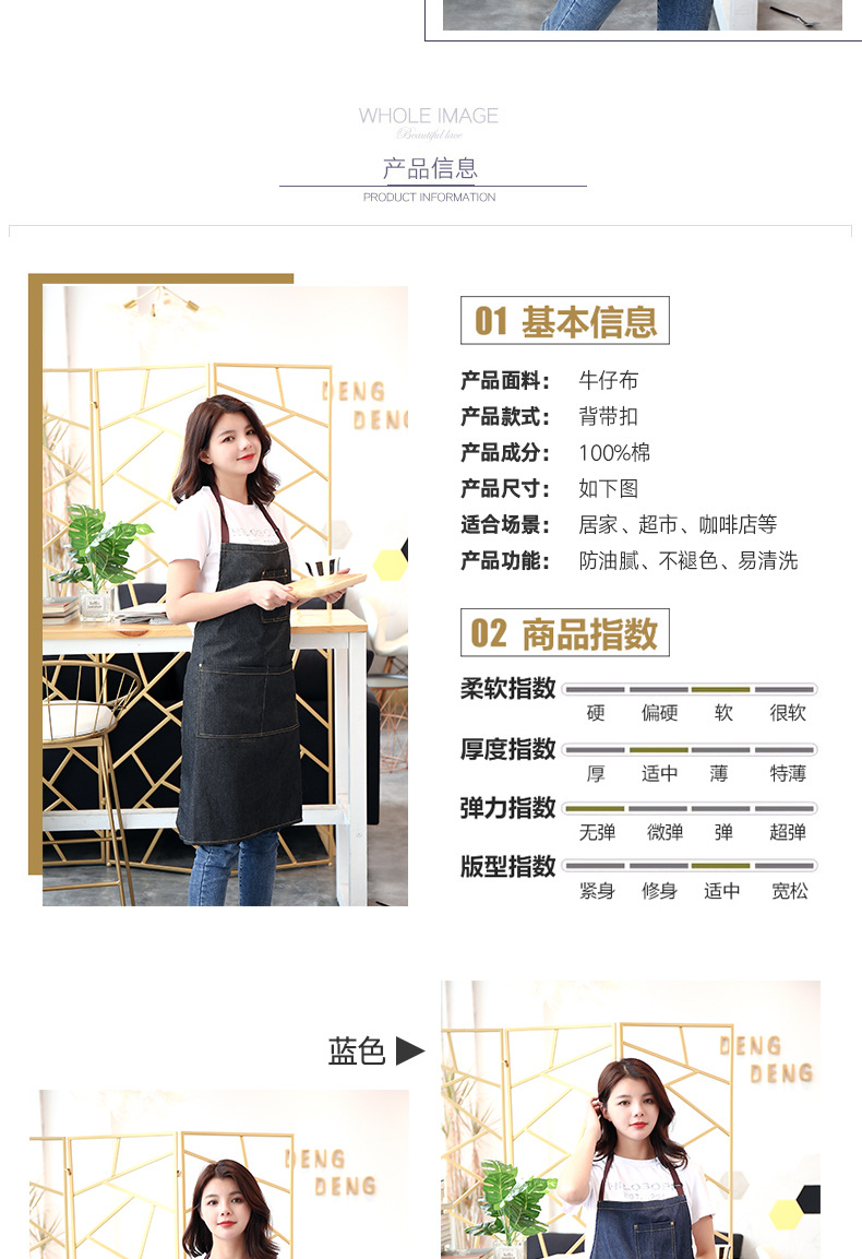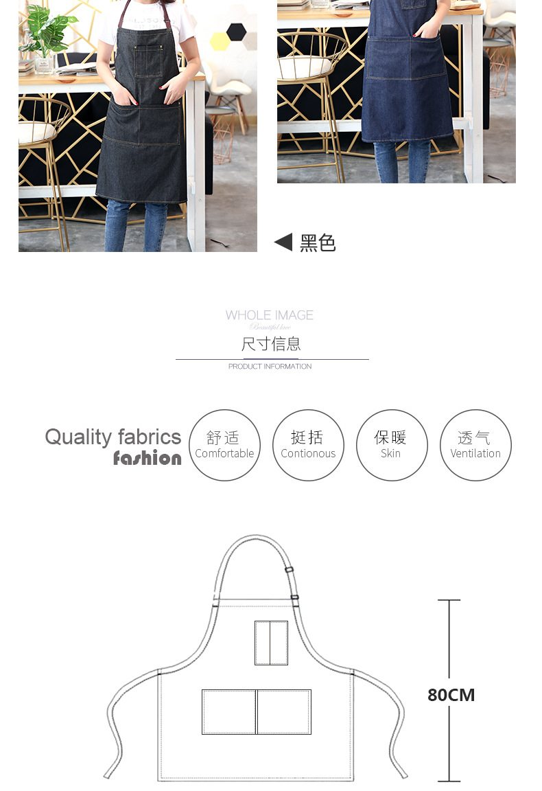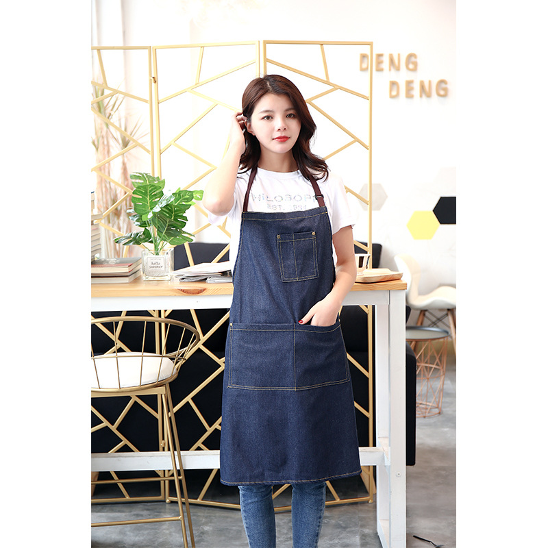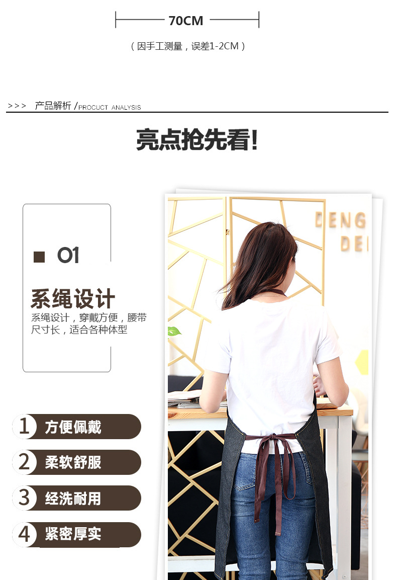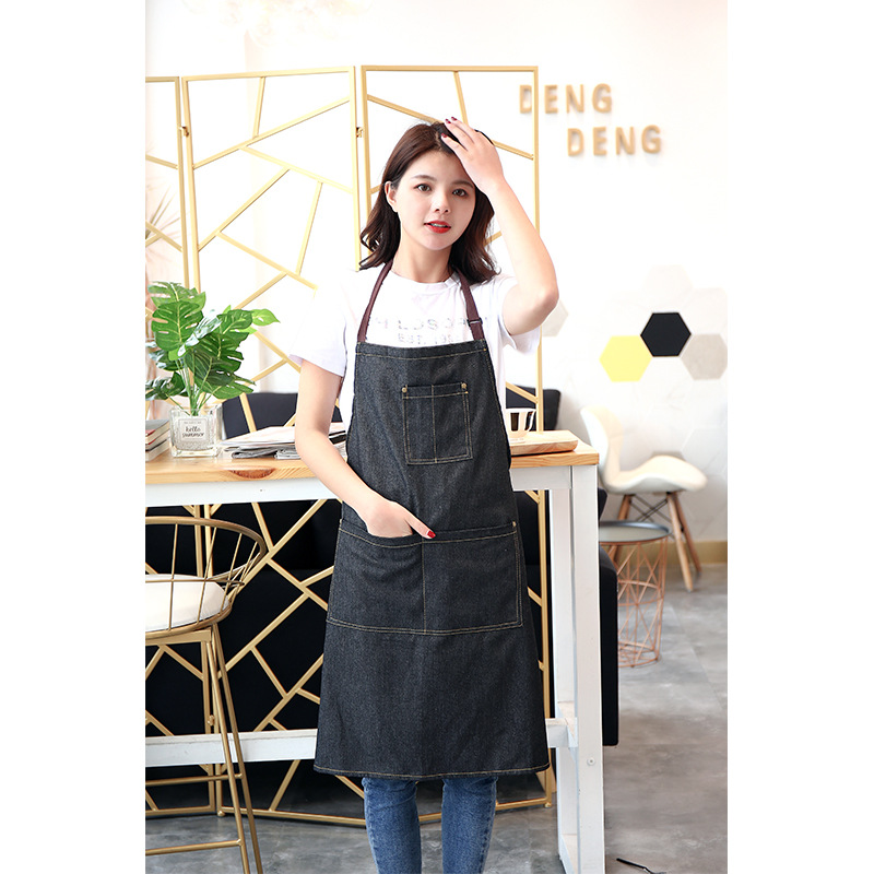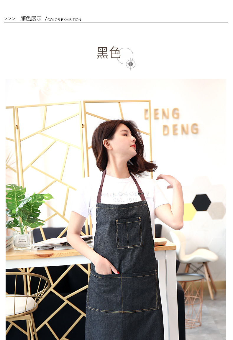 패션 캔버스 데님 앞치마 매니큐어 베이킹 커피 밀크티 샵 이발사 대형 포켓 작업복 인쇄 로고