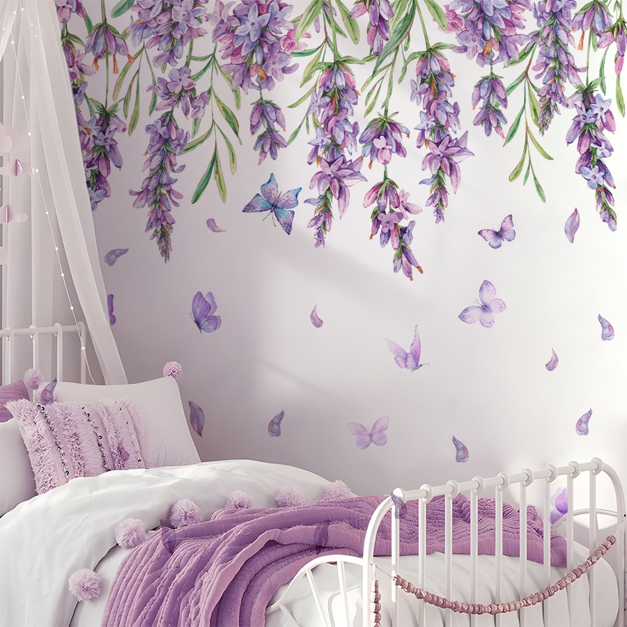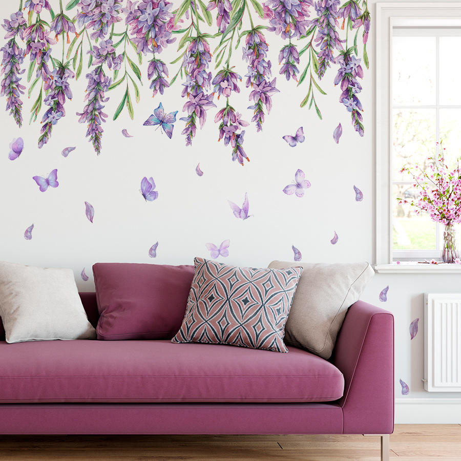 BR3674M 나비 등나무 폭포 잉크 자기 접착 벽 스티커 침실 거실 임대 집 장식 스티커