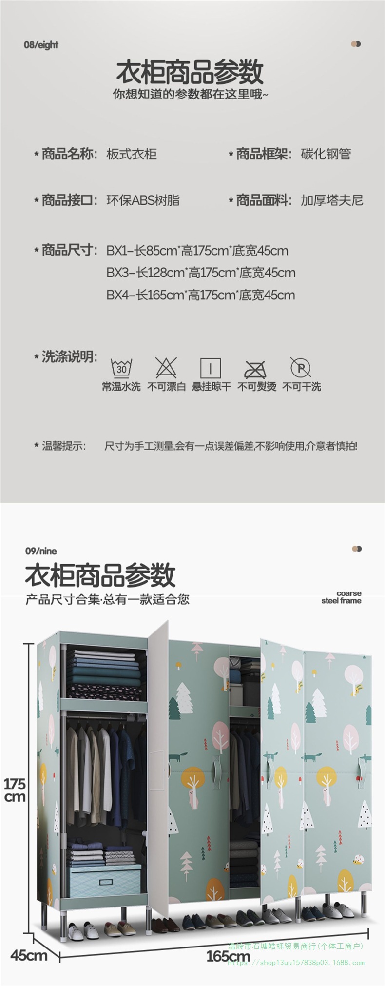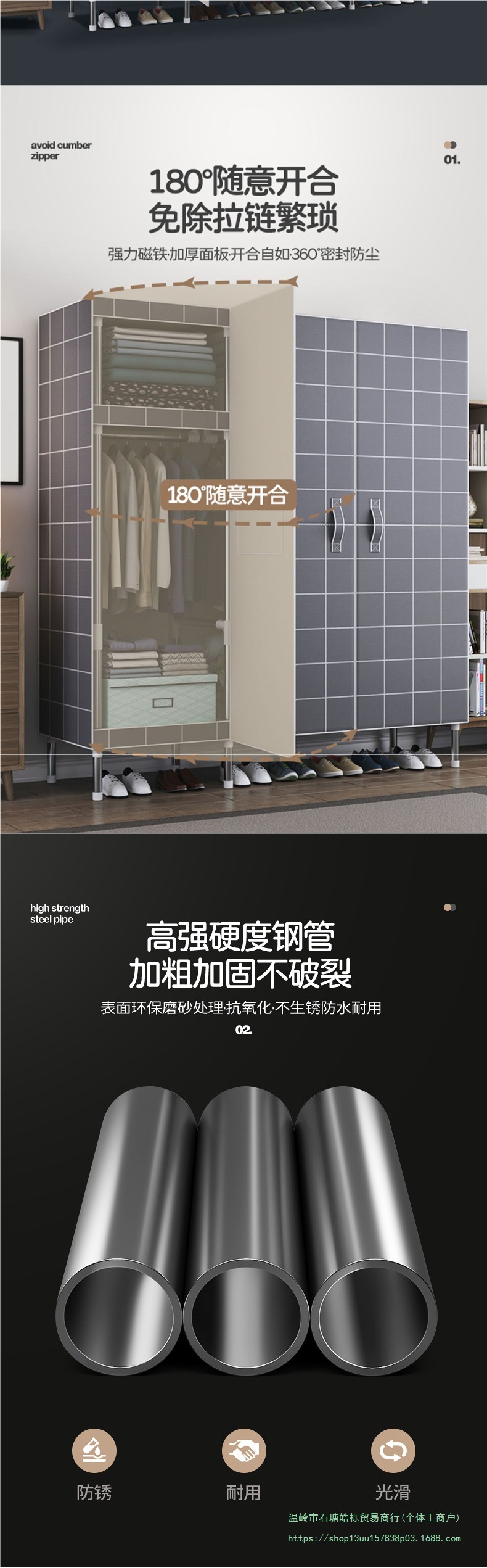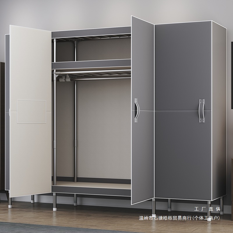 옷장 홈 침실 현대 간단한 간단한 렌탈 룸 오픈 도어 헝겊 옷장 강철 파이프 볼드 보강 보관