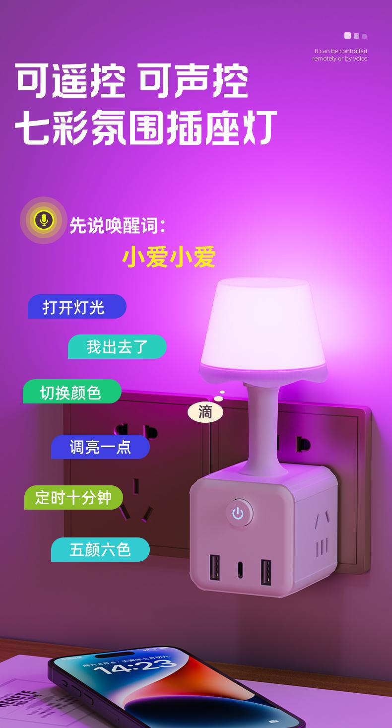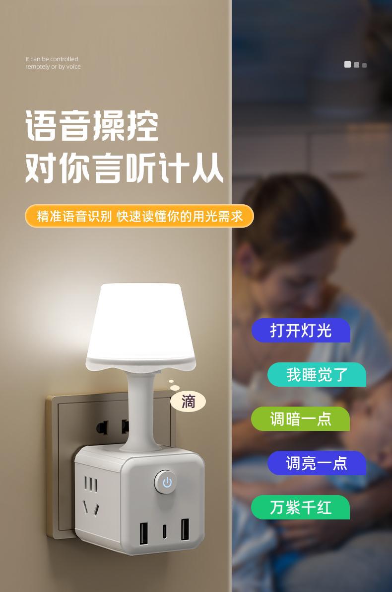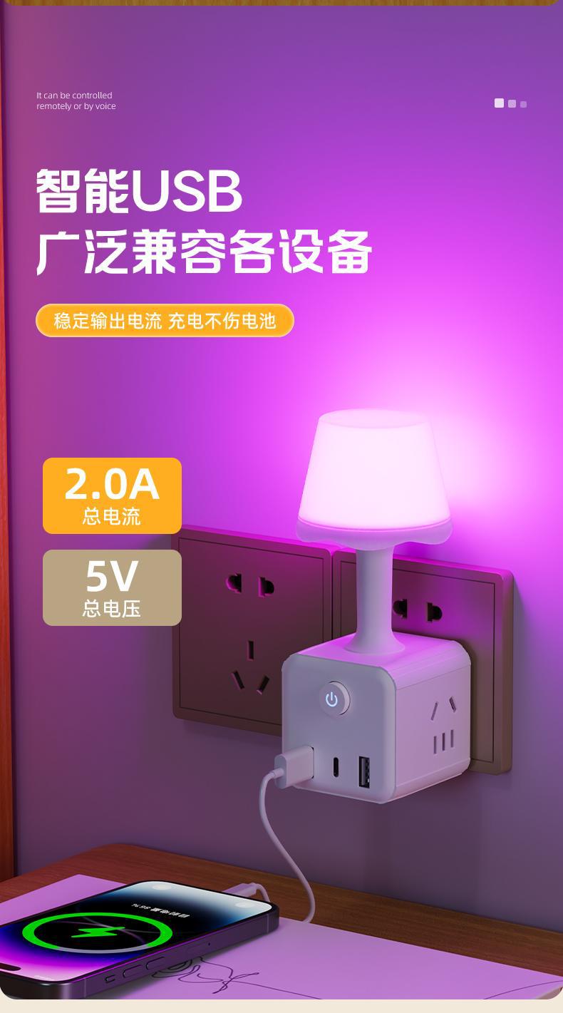 태국 암소 지능형 음성 야간 조명 침실 다채로운 분위기 조명 LED 소프트 라이트 사운드 제어 나이트 라이트 루빅의 큐브 소켓스토어 가기