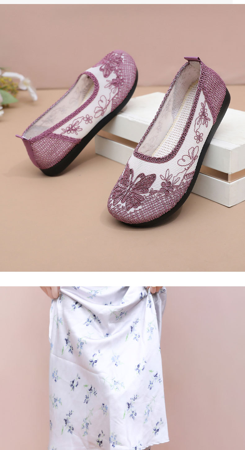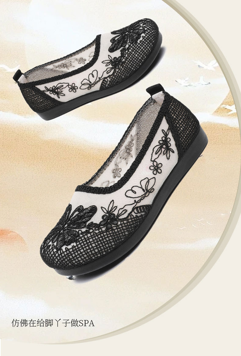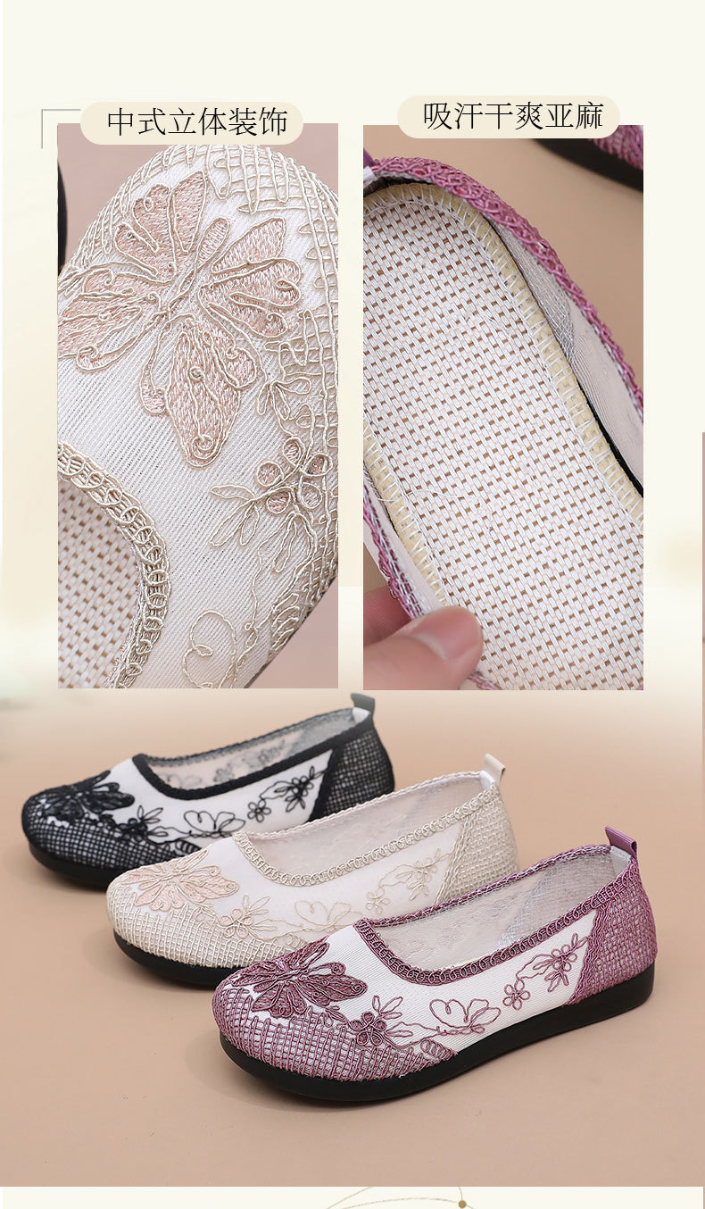 신발 여성 2025 봄과 가을 새로운 자수 여성 신발 오래 된 베이징 천 신발 편안한 부드러운 단독 통기성 슬립 온 신발스토어 가기