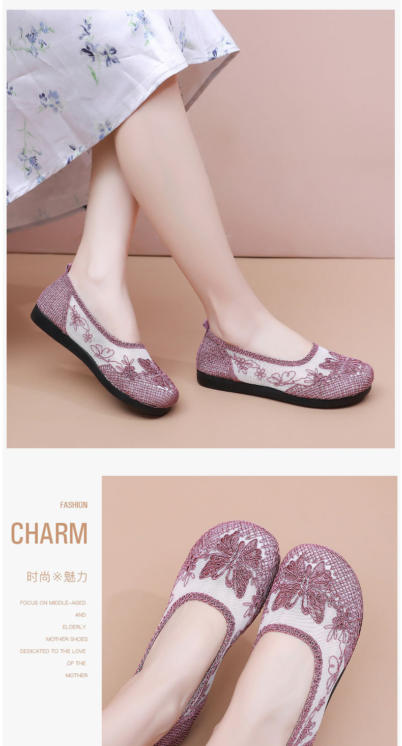 신발 여성 2025 봄과 가을 새로운 자수 여성 신발 오래 된 베이징 천 신발 편안한 부드러운 단독 통기성 슬립 온 신발