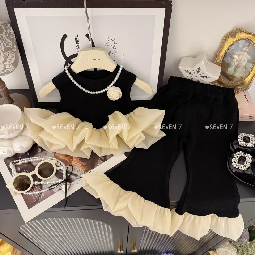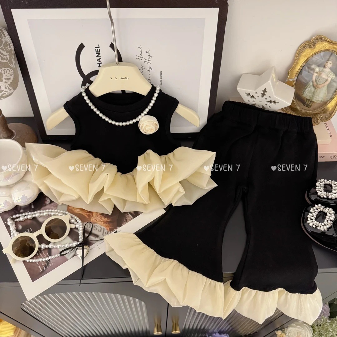 블랙 스완! 소녀 한국식 세트 여름 아기 소녀 마이크로 팬츠를위한 새로운 러플 조끼스토어 가기