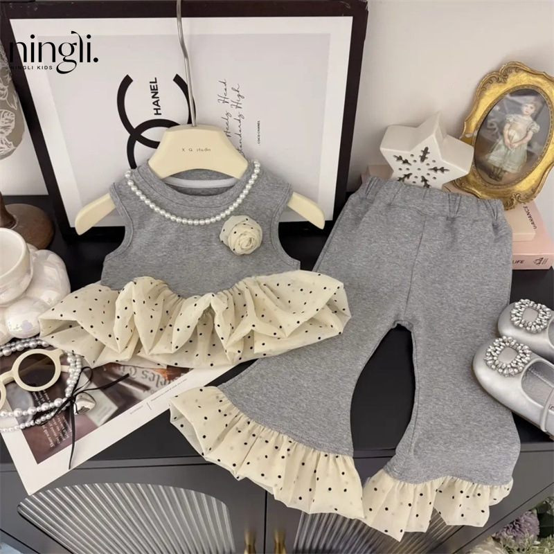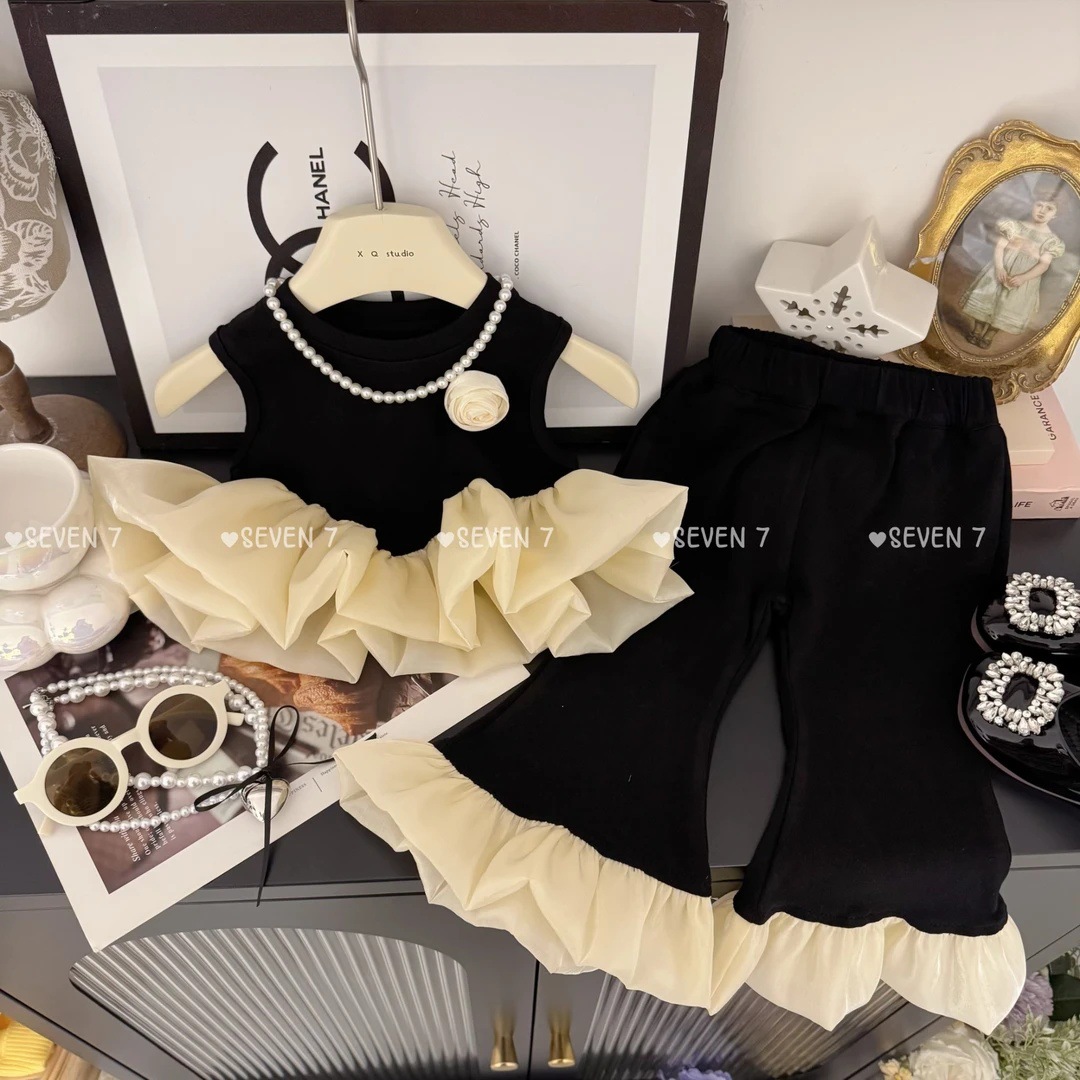 블랙 스완! 소녀 한국식 세트 여름 아기 소녀 마이크로 팬츠를위한 새로운 러플 조끼