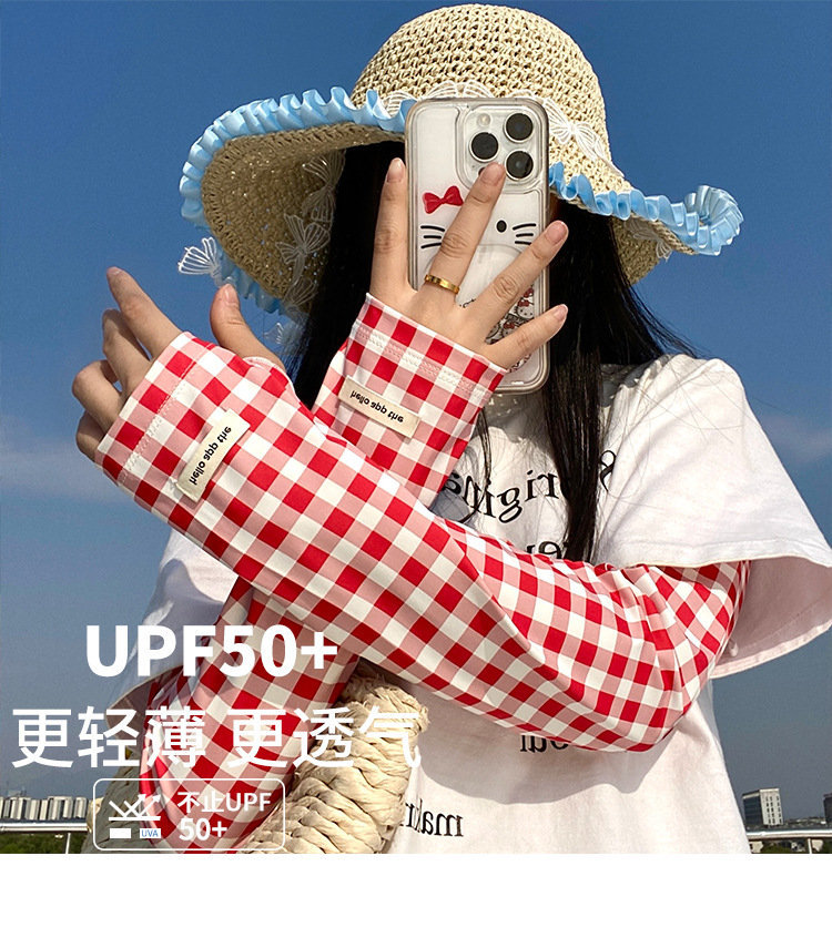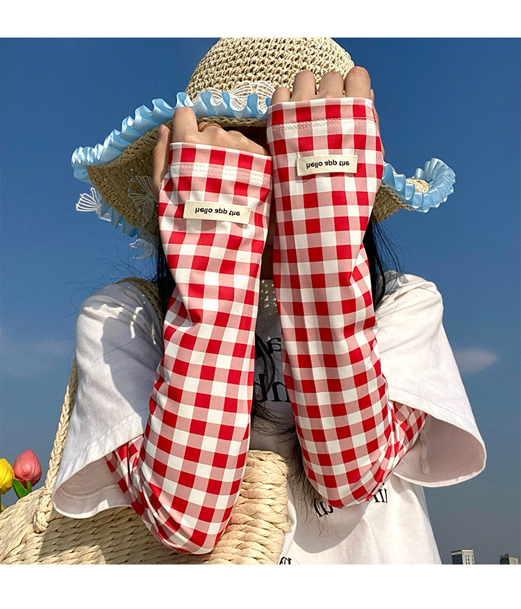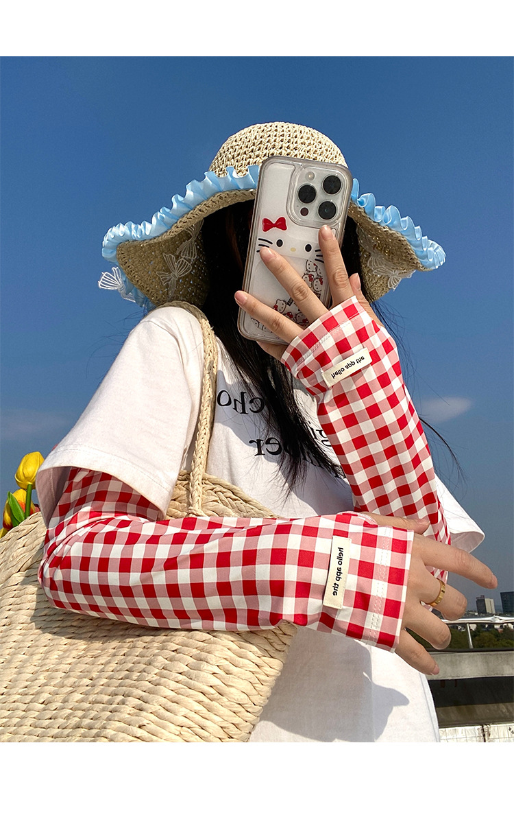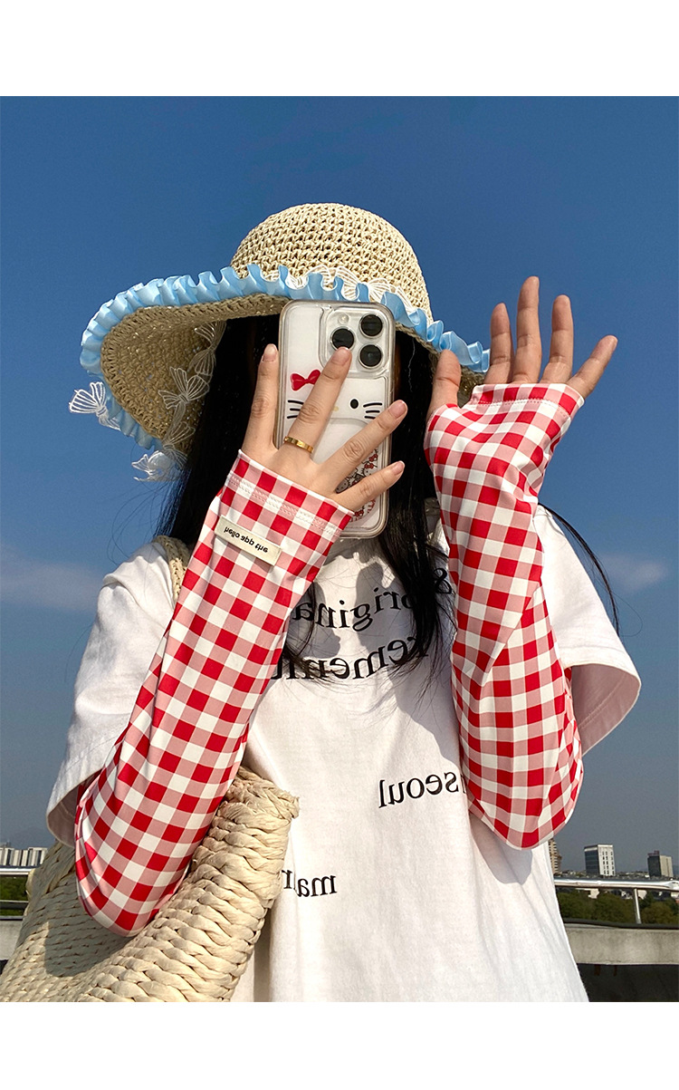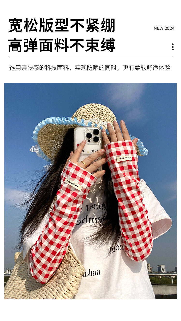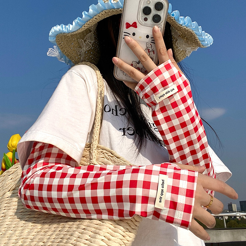 빨간 격자 무늬 느슨한 선 스크린 소매 여성의 여름 자외선 차단 야외 승마 운전 통기성 햇빛 얼음 소매 조수스토어 가기