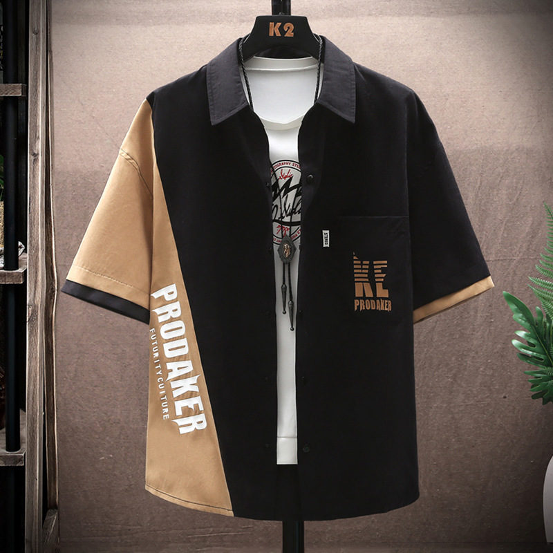 십대 잘 생긴 반소매 작업 셔츠 소년 여름 느슨한 디자인 센스 반소매 셔츠 얇은 캐주얼 재킷스토어 가기