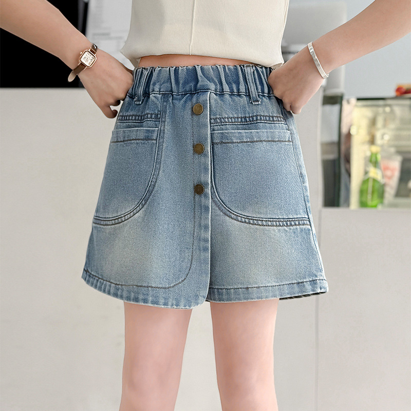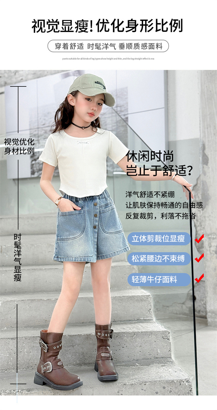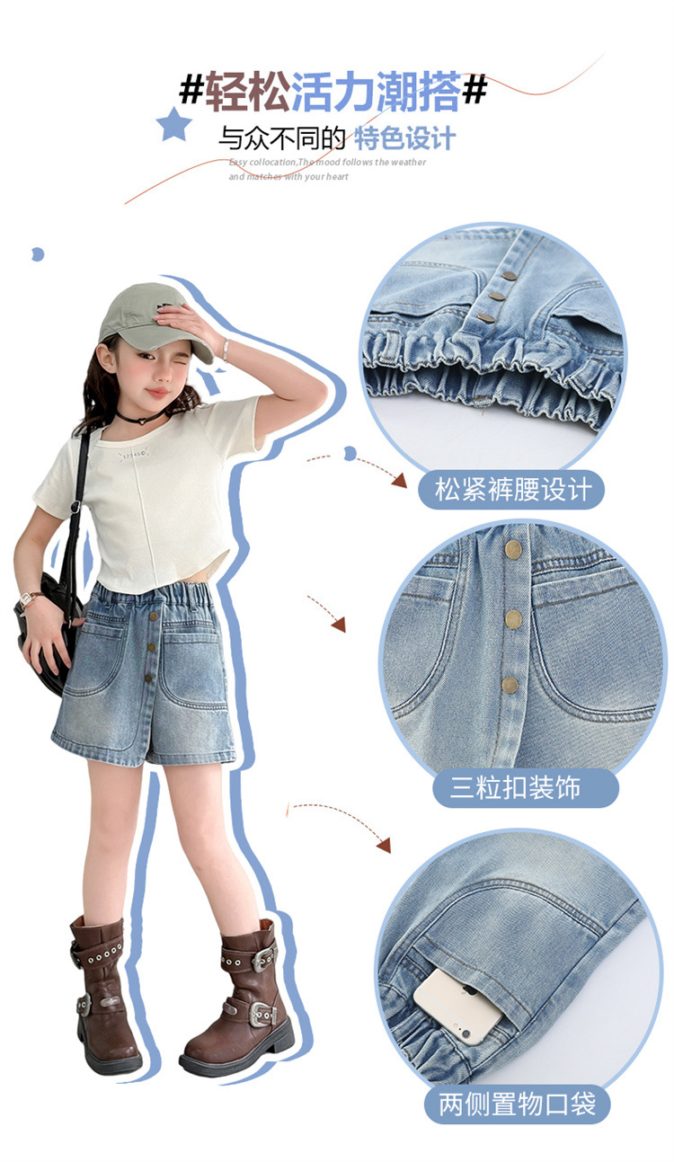 여자 여름 데님 컬로 테스 어린이 서양식 유행 여름 컬로 테스 걸스 올 매치 2025 새로운 짧은 바지스토어 가기
