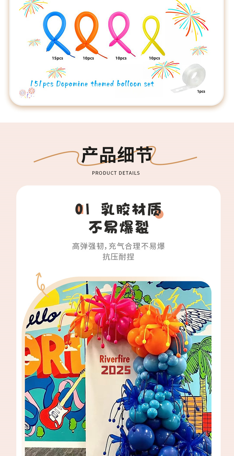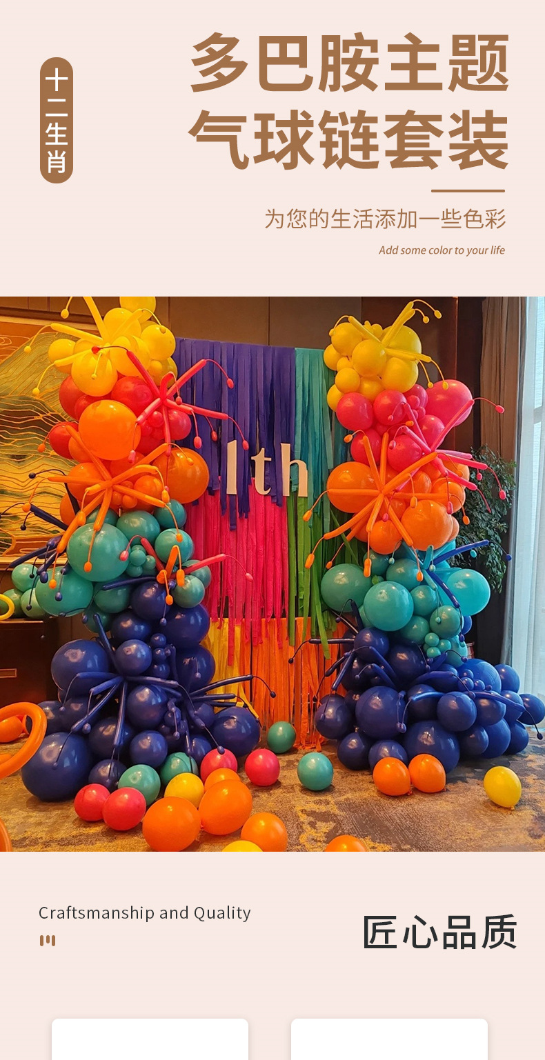 도파민 불꽃 놀이 테마 풍선 체인 세트 스트립 풍선 DIY 불꽃 놀이 풍선 생일 파티 풍선 레이아웃