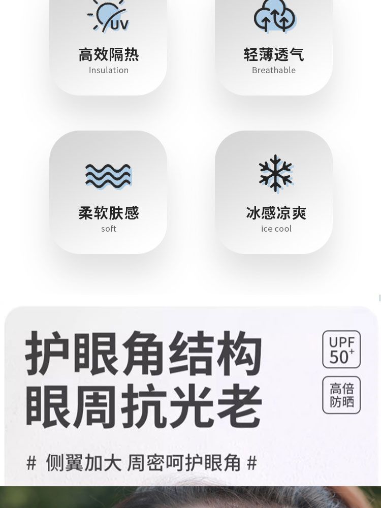 얼음 실크 선 스크린 마스크 봄과 여름 새로운 UPF50 안티 자외선 높은 색상 가치 여성의 눈 각도 3 차원 통기성 얇은