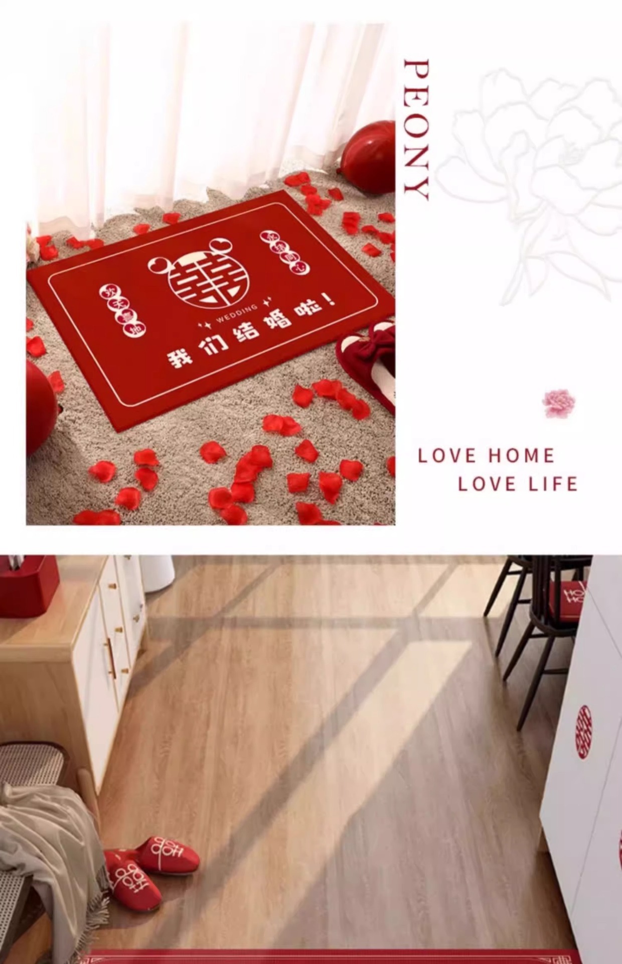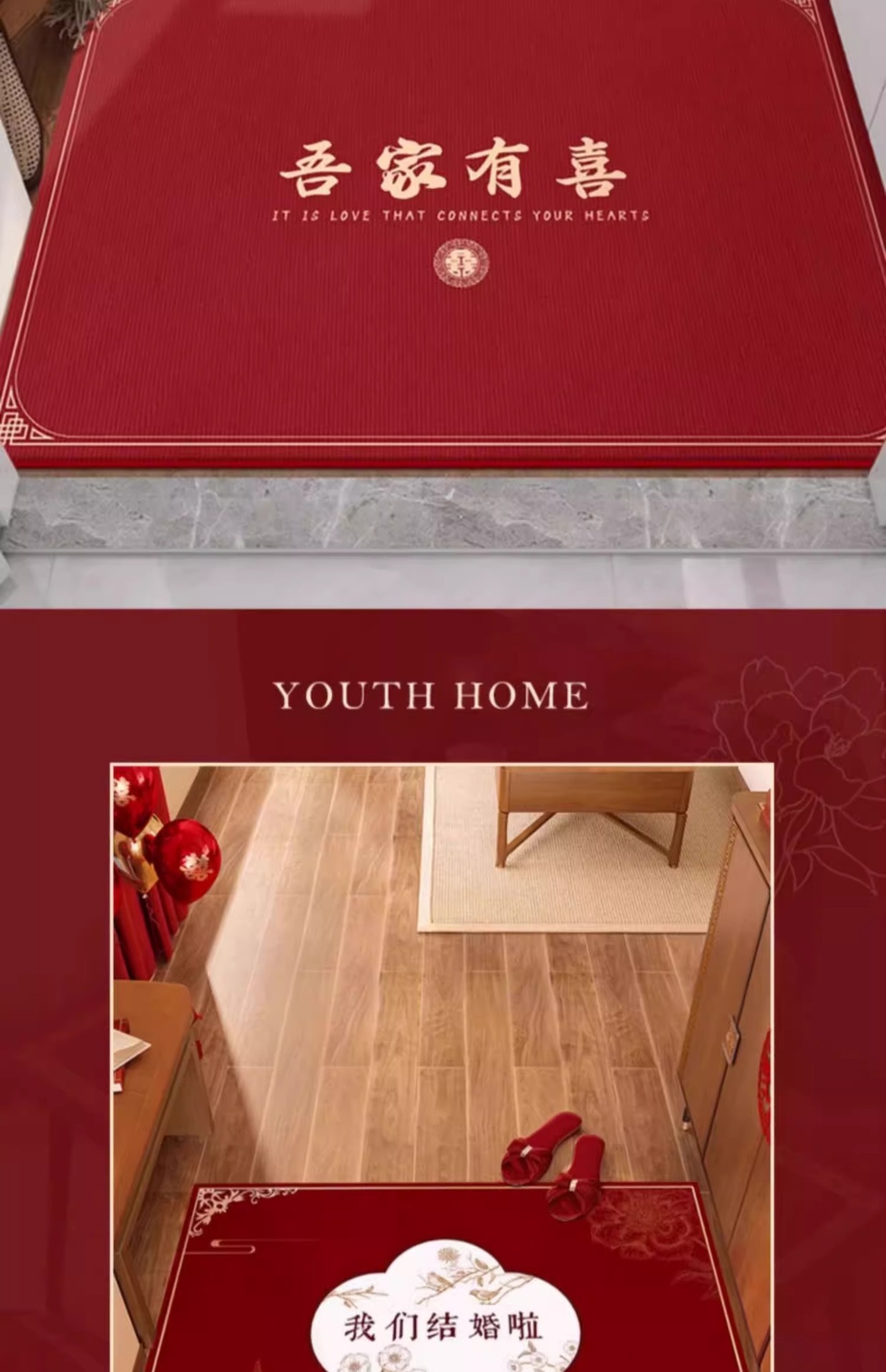 결혼 축하 문패, 현관문용, 새로운 중국식 빨간색 웨딩룸 도어매트, 침실용 미끄럼 방지 카펫