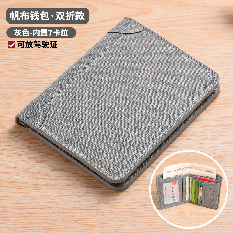 국경 간 새로운 캔버스 지갑 남성 초박형 짧은 지갑 카드 홀더 수직 학생 간단한 패션 남성 지갑스토어 가기