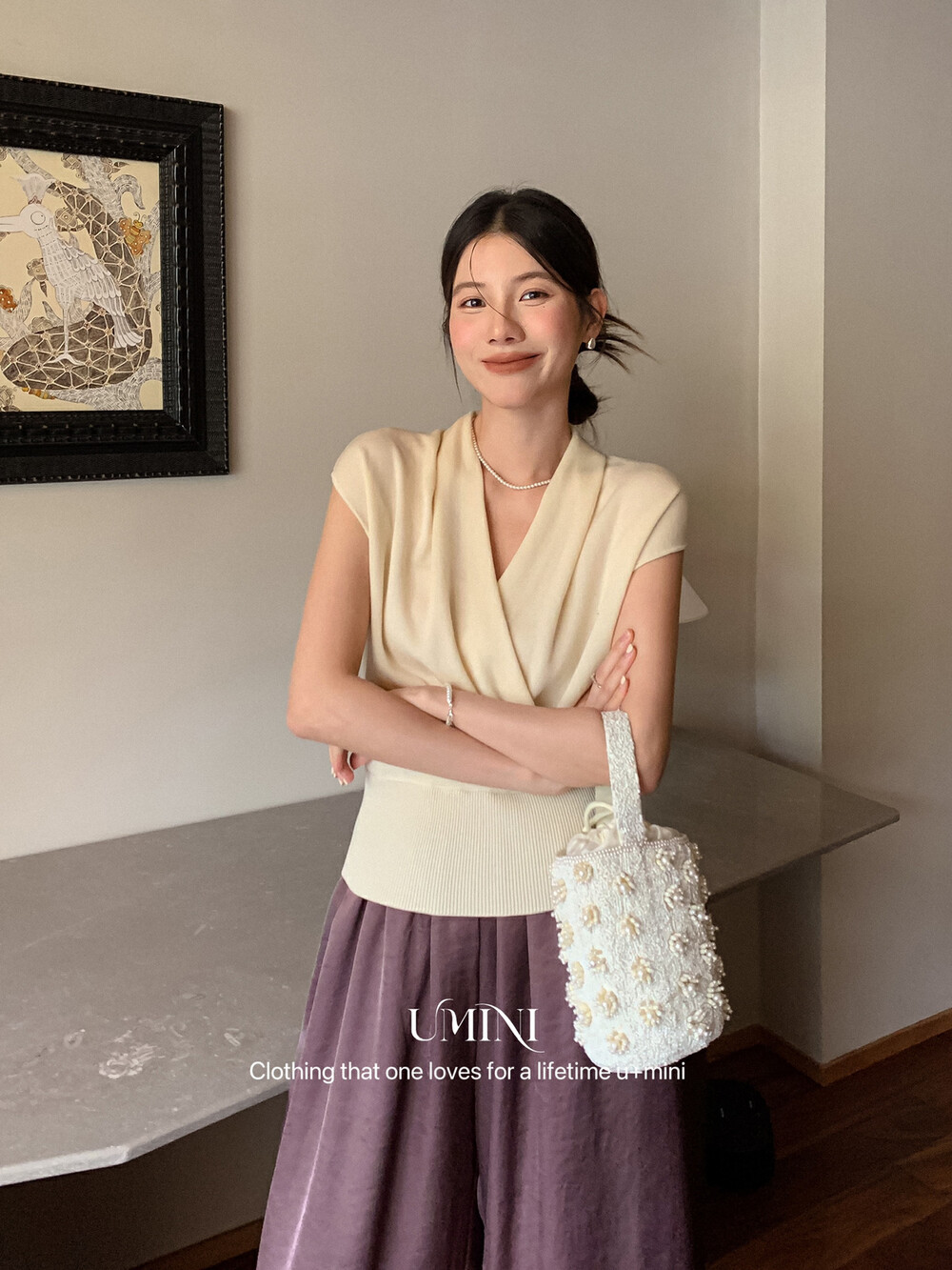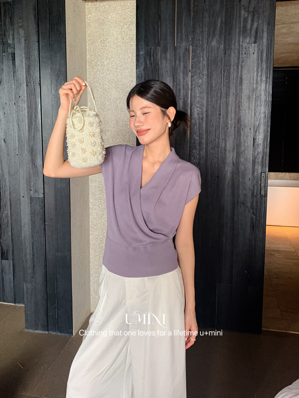 U 미니 13 호선 6169 새로운 한국 텐셀 Lyocell 간단한 하이 엔드 V 넥 스웨터 여자 탑스토어 가기