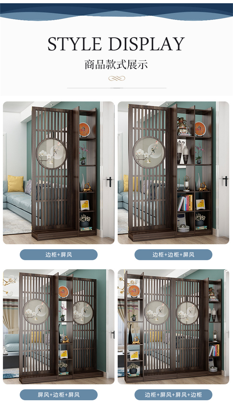 새로운 중국 스타일의 스크린 파티션 장식 벽 거실 선반 단단한 나무 저장 랙 중공 간단한 현대 입구 캐비닛스토어 가기