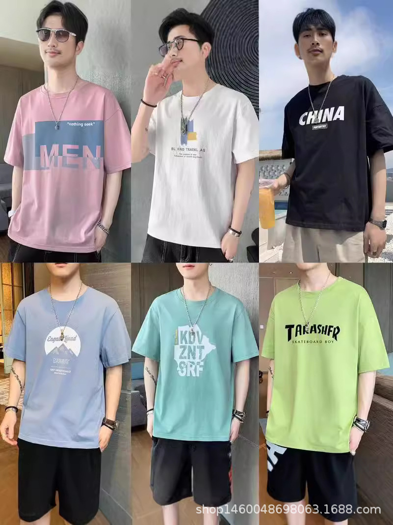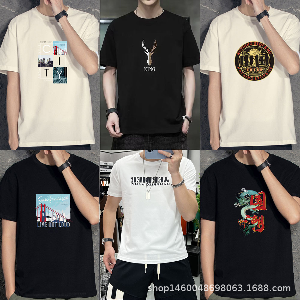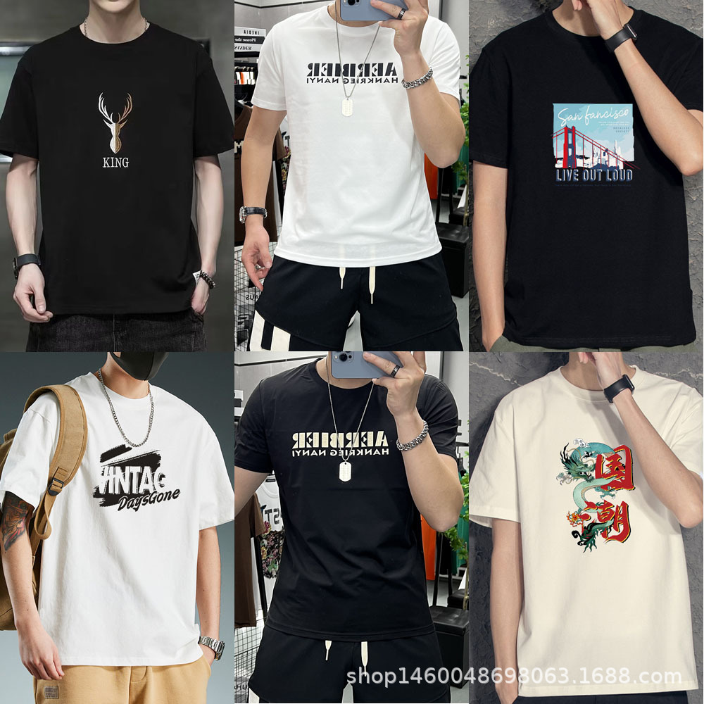 여름 대외 무역 남성 반팔 티셔츠 도매 런닝 마켓 인기 판매 5 위안 노점 남성 티셔츠 공급 원피스 드롭 배송스토어 가기