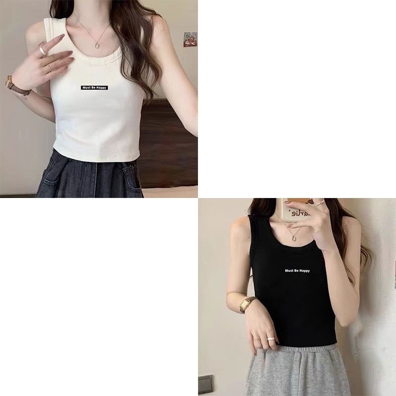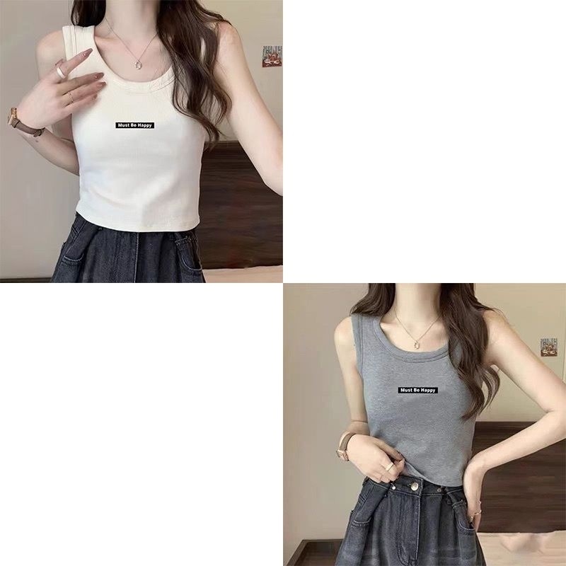 아이스 실크 카미솔 새 스타일 조끼 여름 한국식 베이스 레터 민소매 탑 아우터웨어 슬림핏 올매치 여자 캐주얼스토어 가기