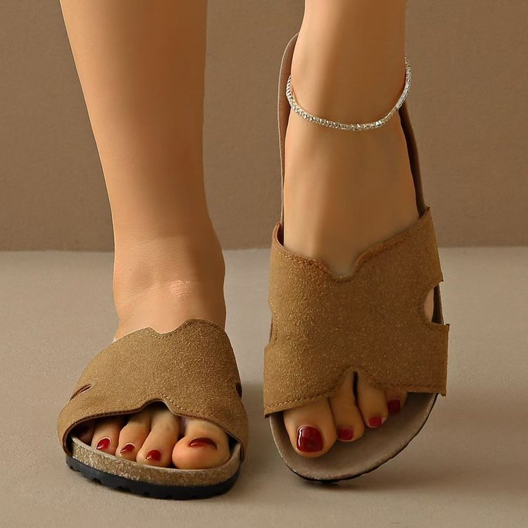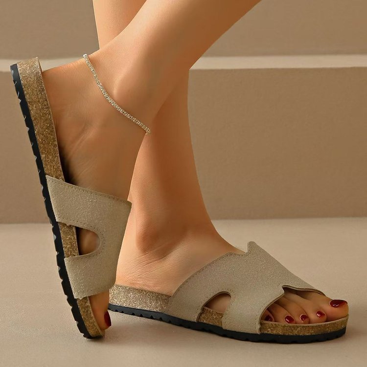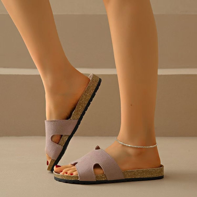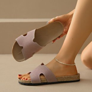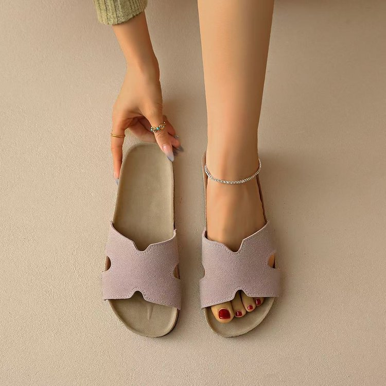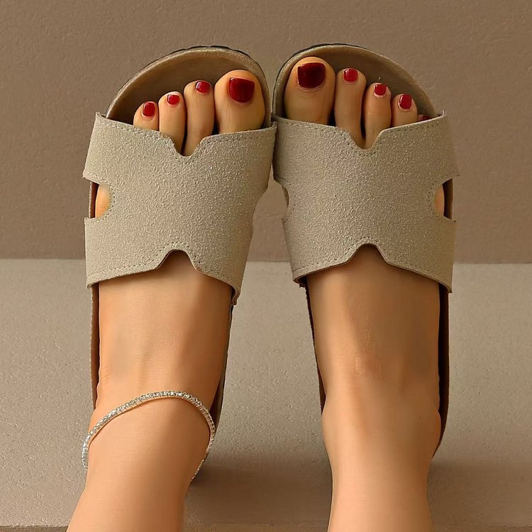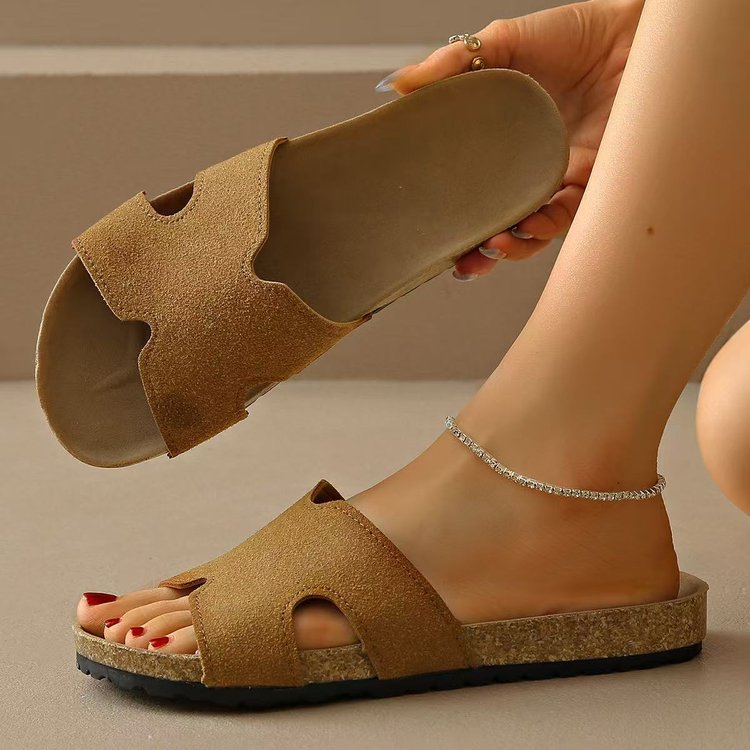 플랫 슬리퍼 2025 봄과 여름 새로운 여성 신발 간단한 레트로 비치 슬리퍼