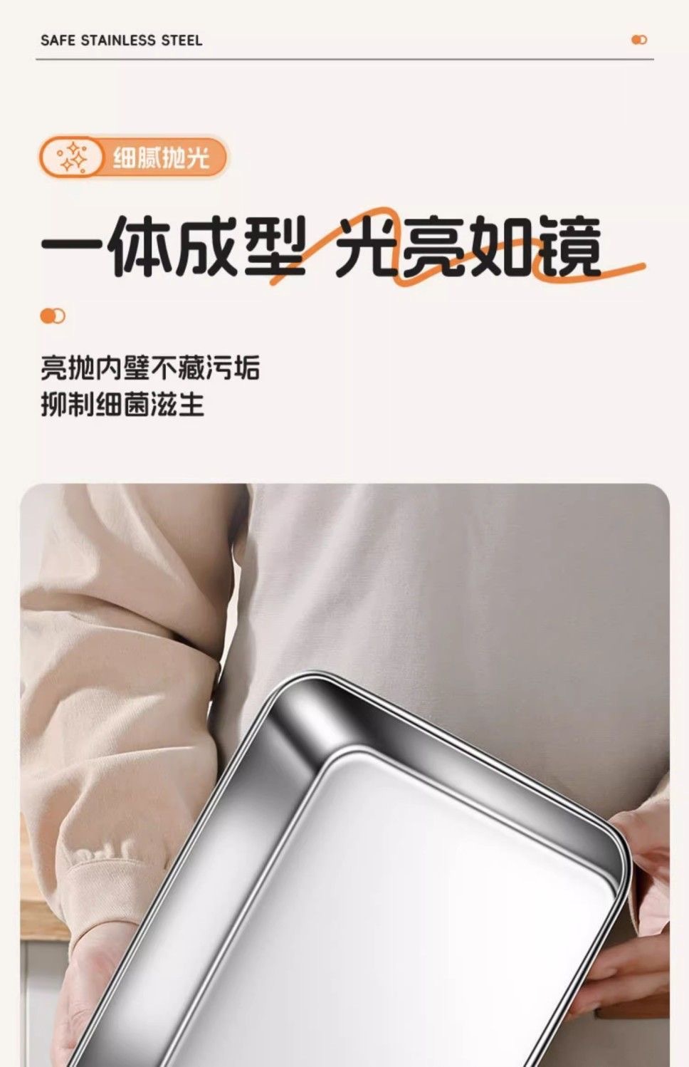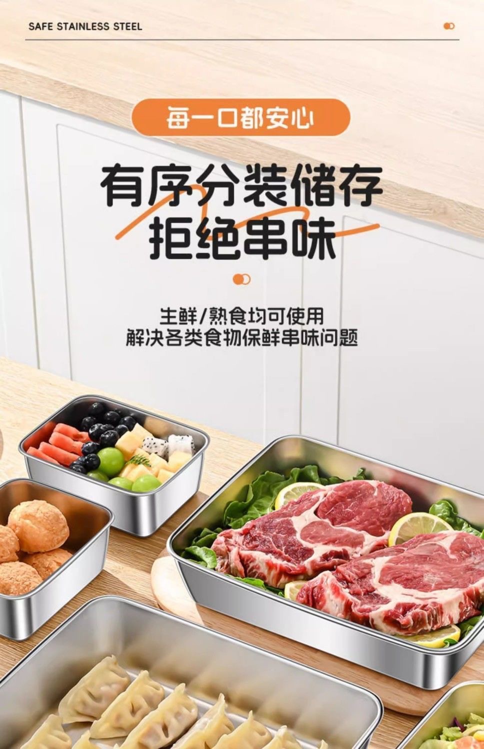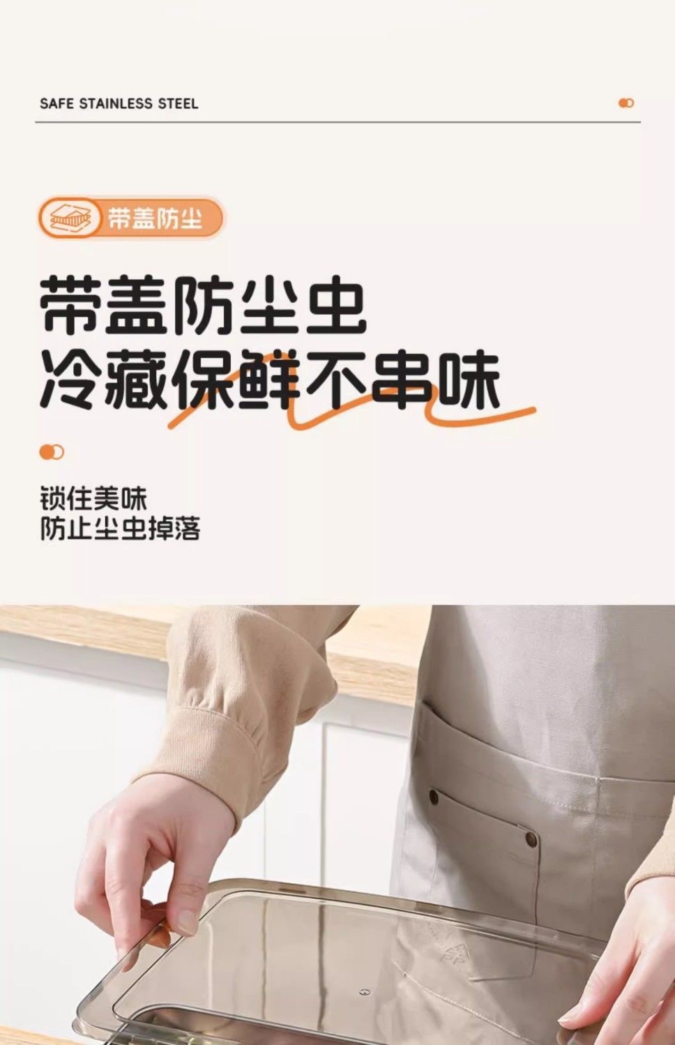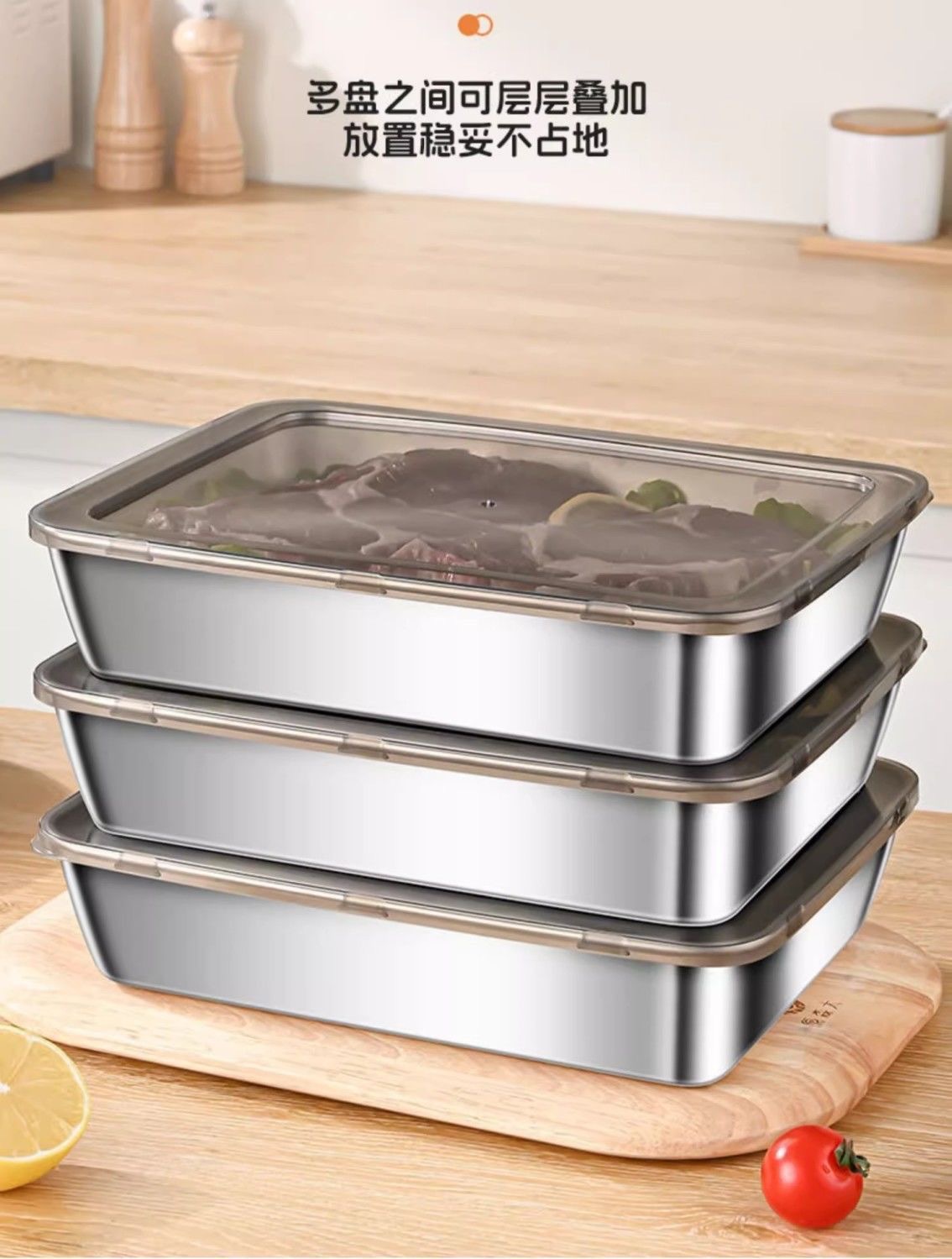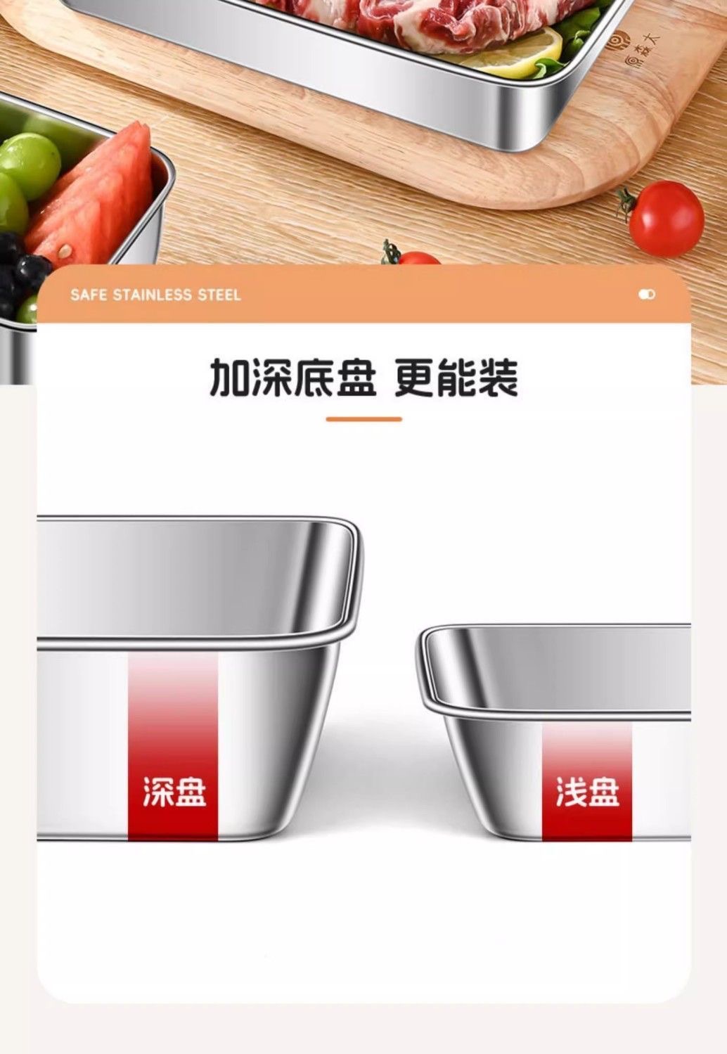스테인레스 스틸 식품 등급 두꺼운 사각형 접시 차가운 접시 트레이 김이 나는 트레이 뚜껑 오븐 직사각형 씰이있는 다중 사용 신선한 보관 상자스토어 가기