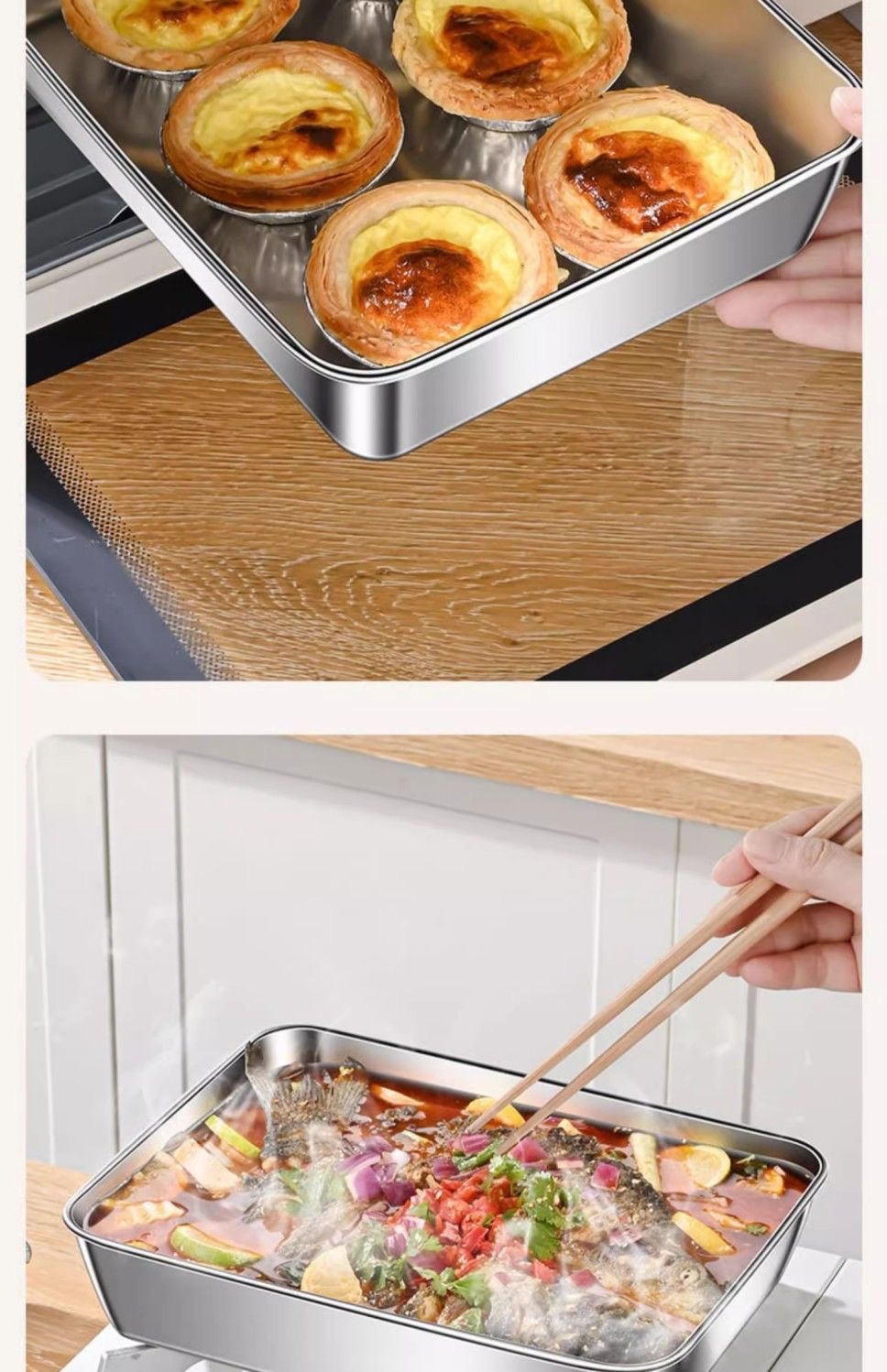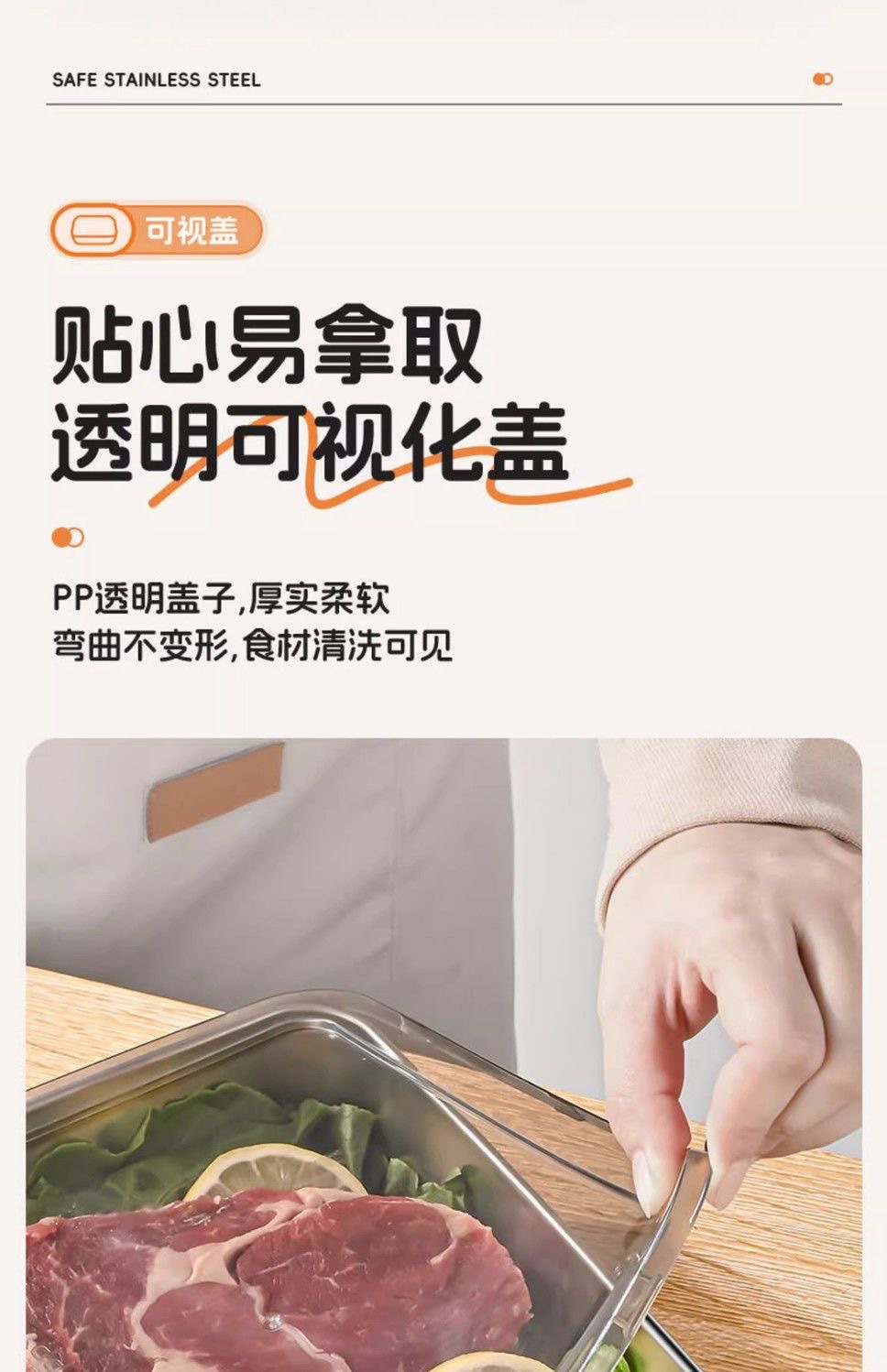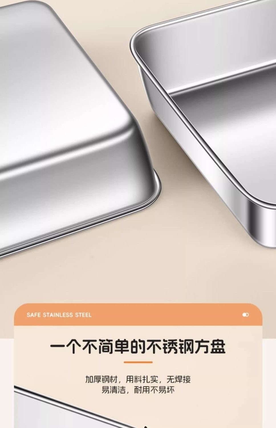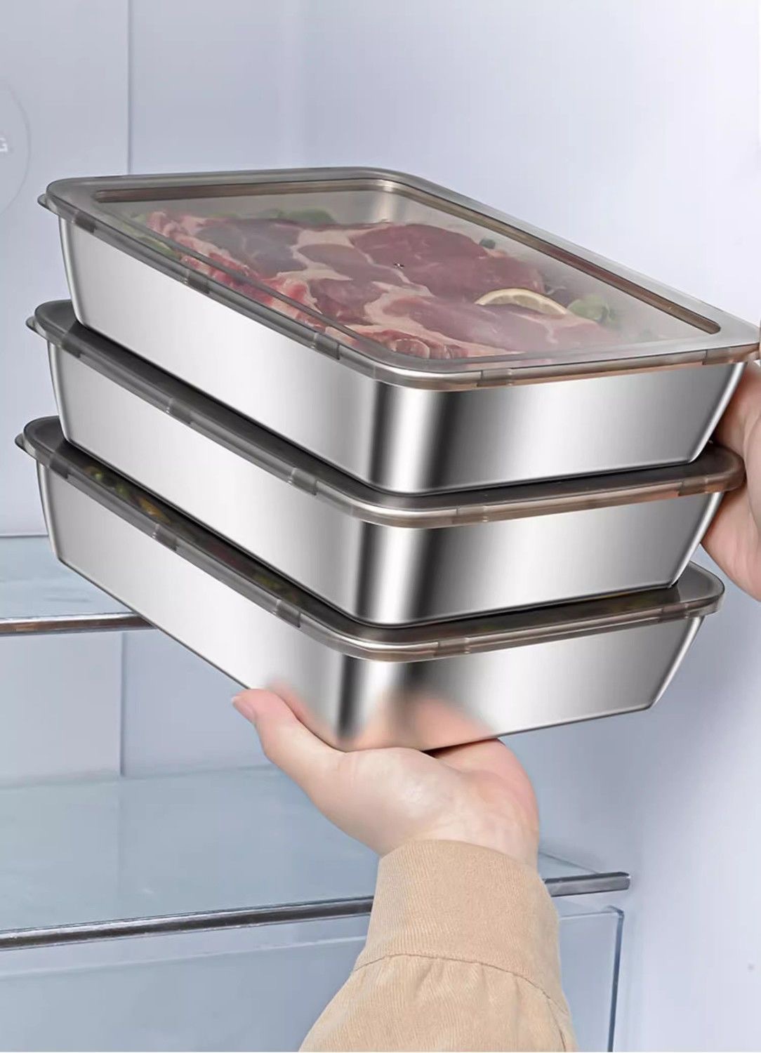 스테인레스 스틸 식품 등급 두꺼운 사각형 접시 차가운 접시 트레이 김이 나는 트레이 뚜껑 오븐 직사각형 씰이있는 다중 사용 신선한 보관 상자스토어 가기
