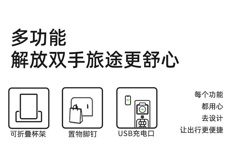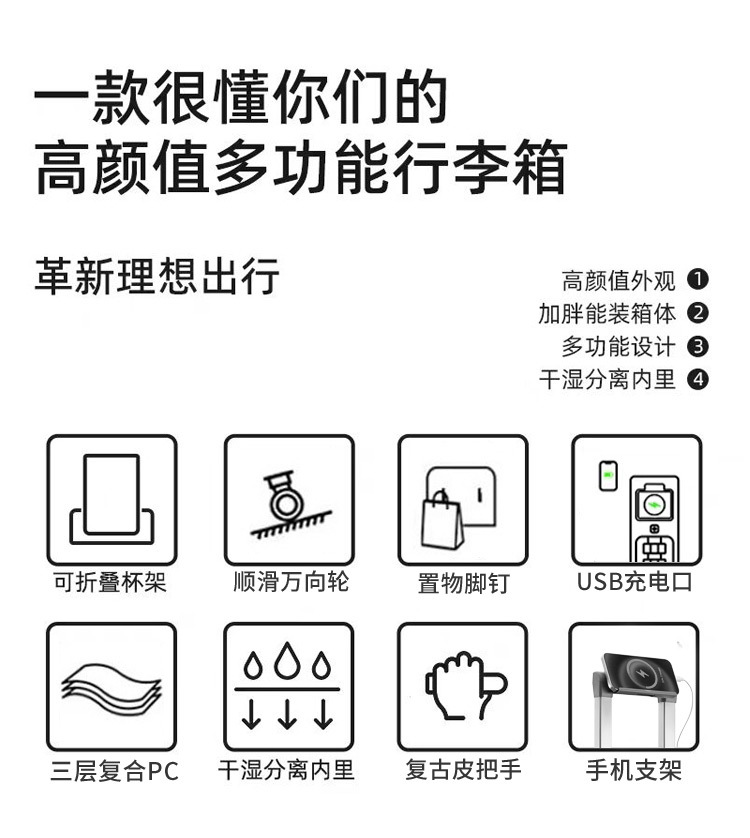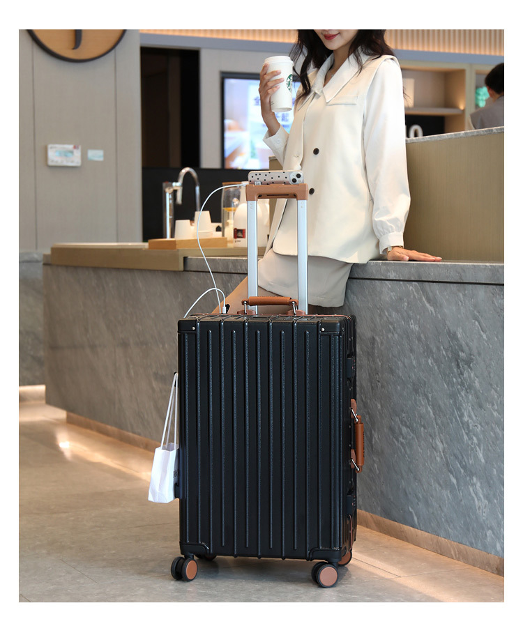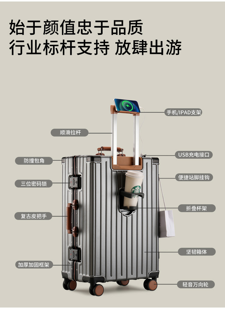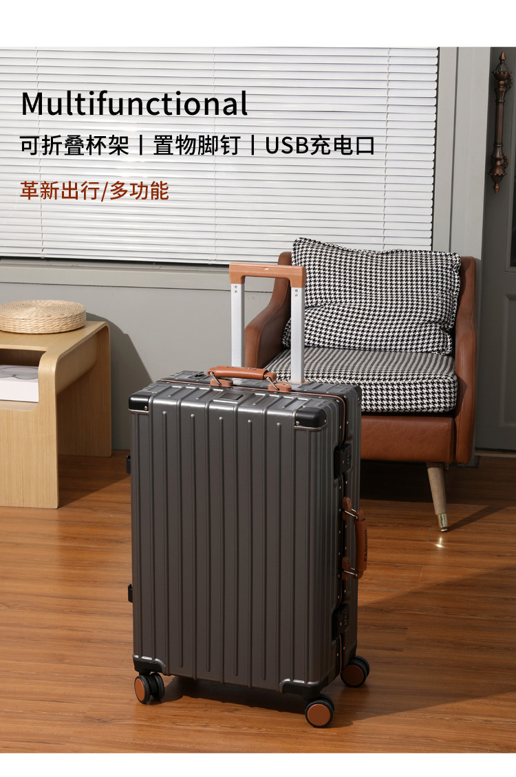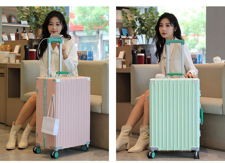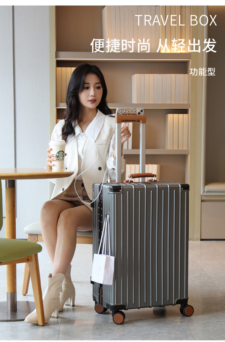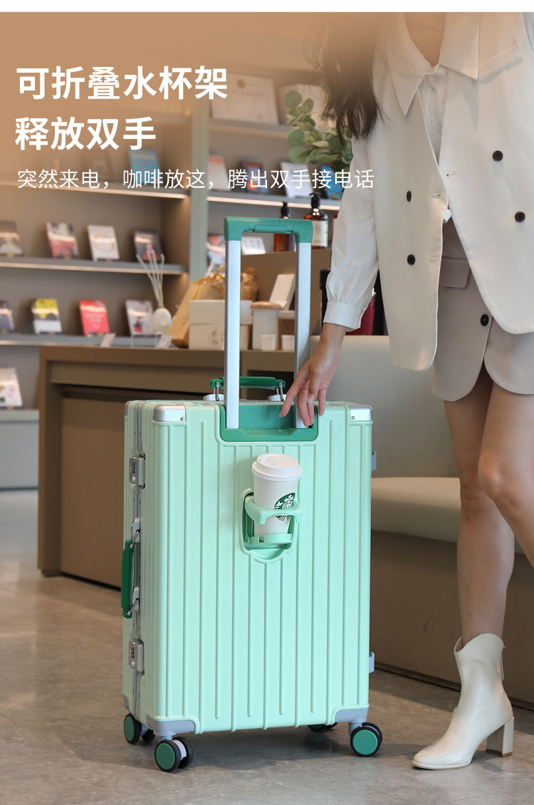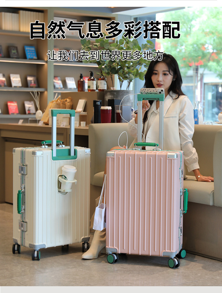 2025 새로운 대용량 수하물 케이스 20 인치 범용 휠 단색 트롤리 케이스 USB 충전 컵 홀더 가방스토어 가기