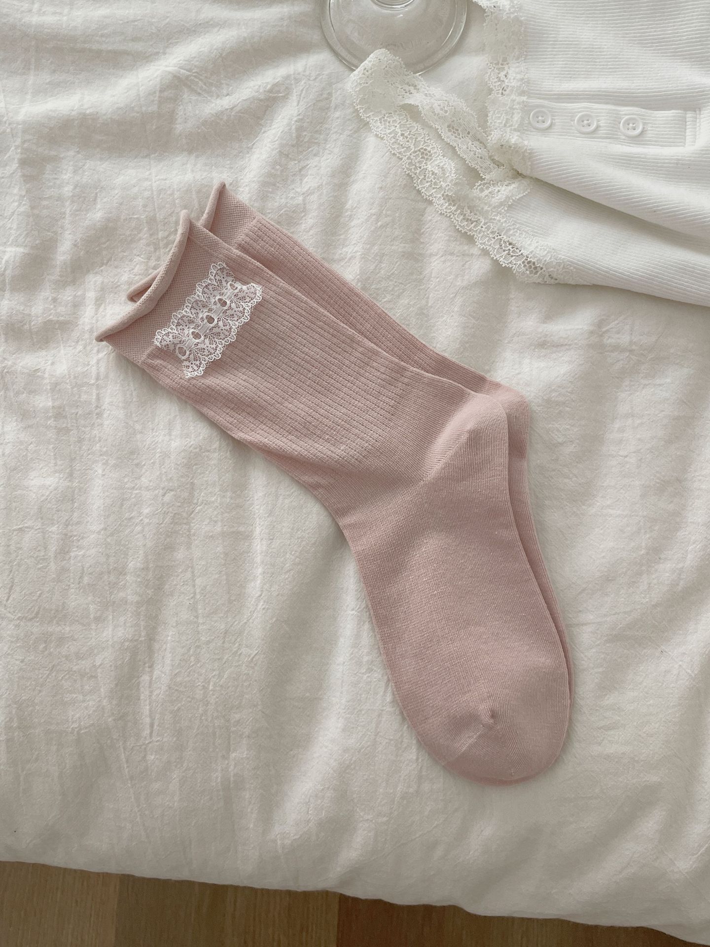 어린이를위한 사랑의 중공 분위기 Bowknot 스택 양말 경량 통기성 미드 튜브 양말 Sweet Floral JK Lolita스토어 가기