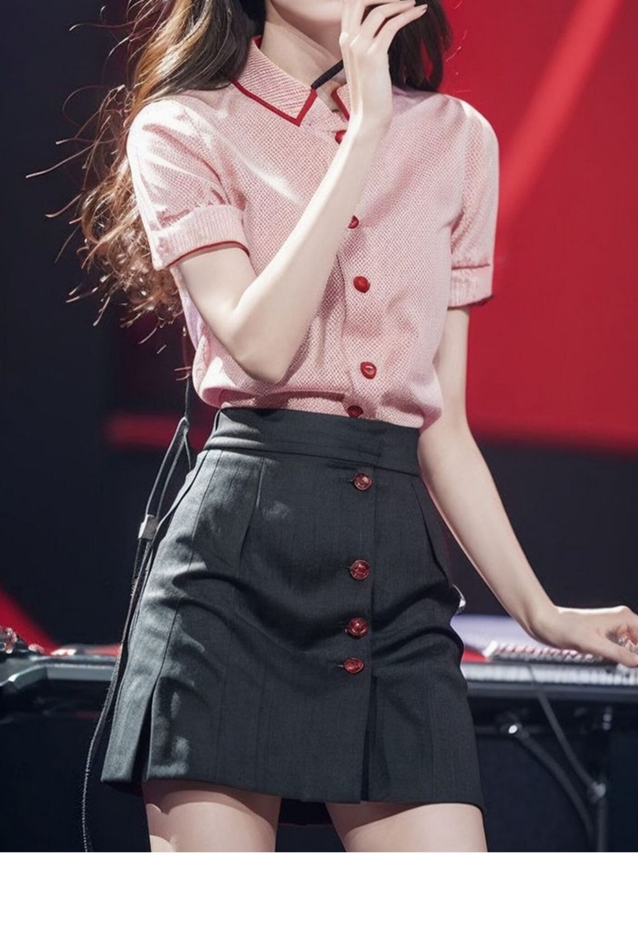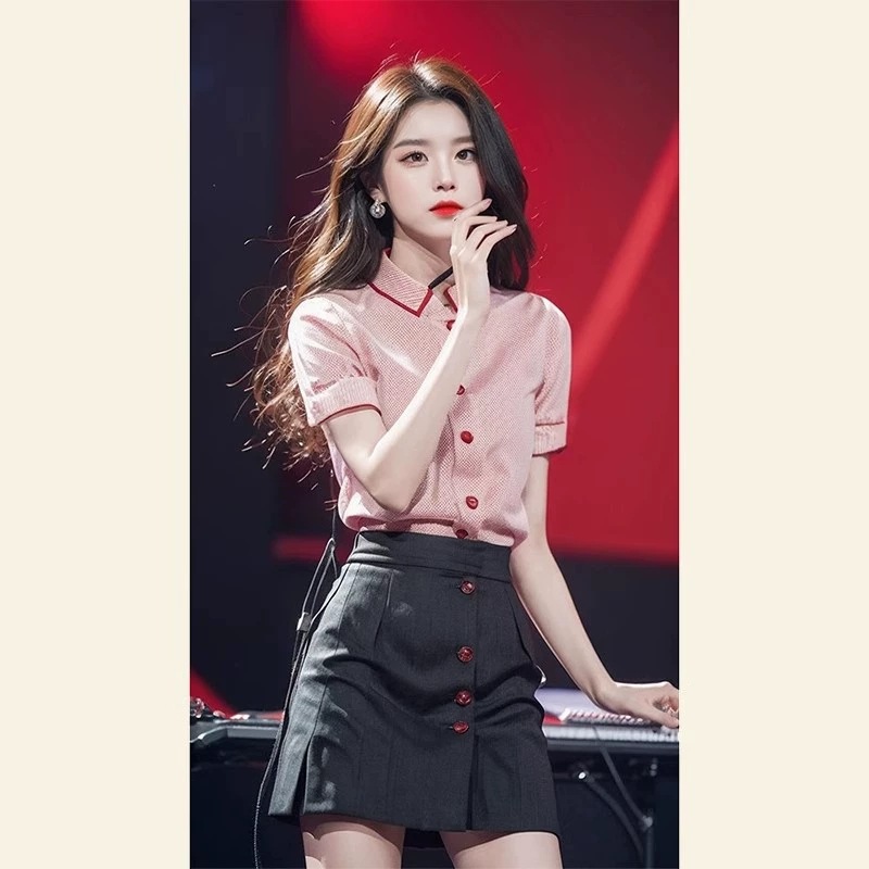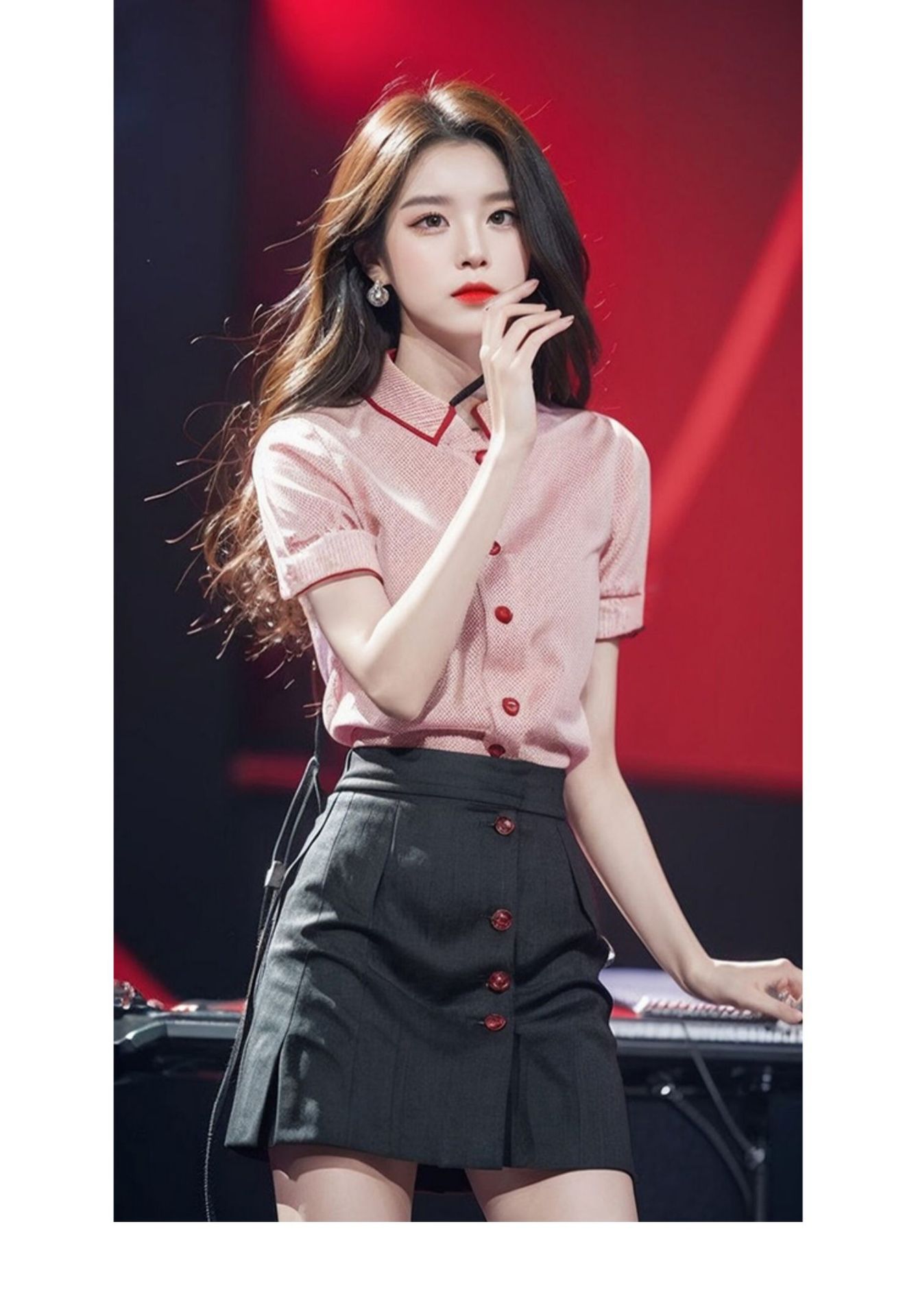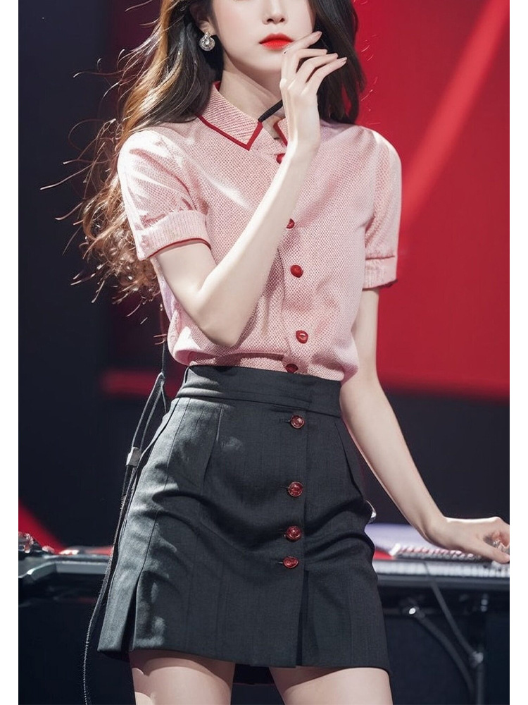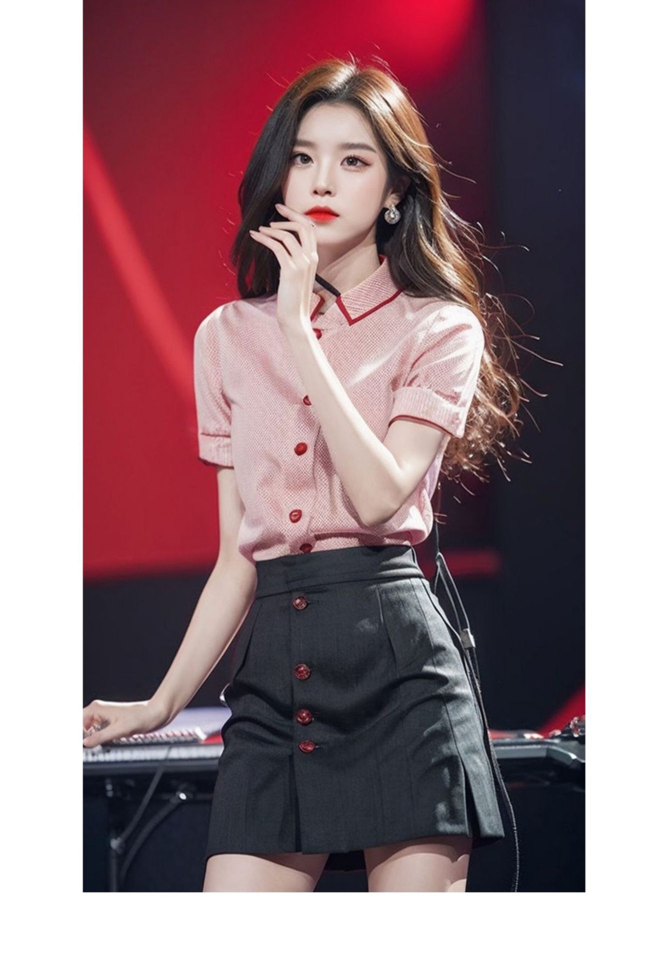 세트 여름에 도파민 핑크 반팔 탑 슬림 스커트 세트를 가진 세련된 나이를 줄이는 패션 작은 남자스토어 가기