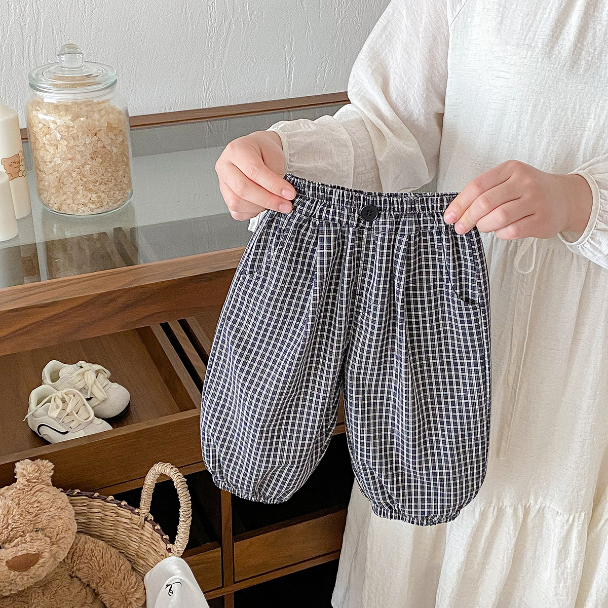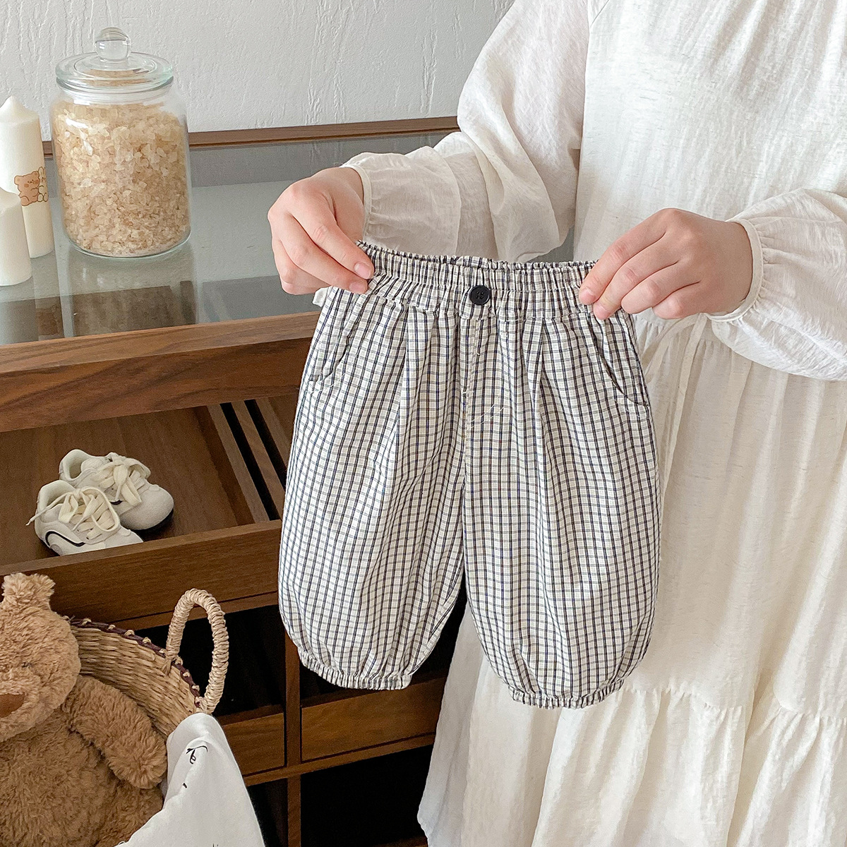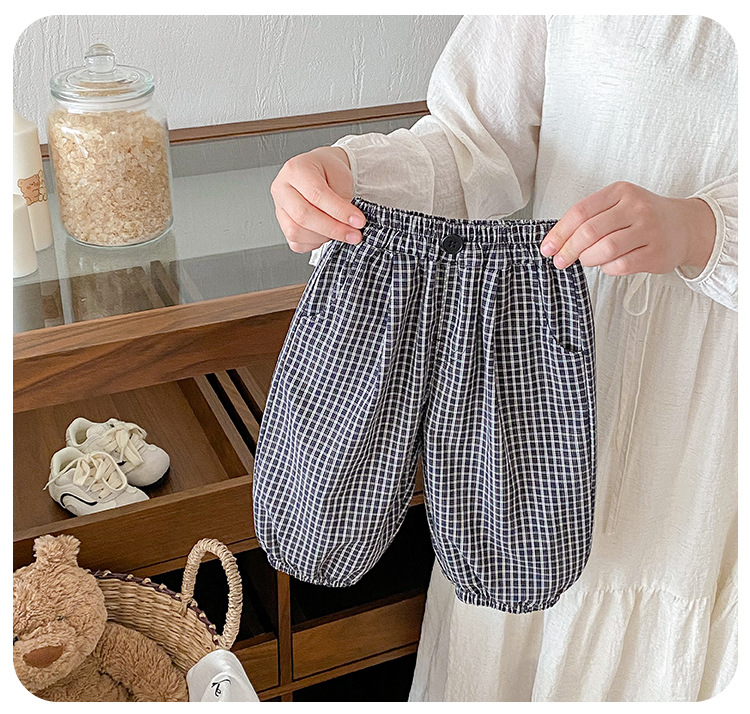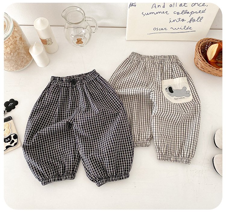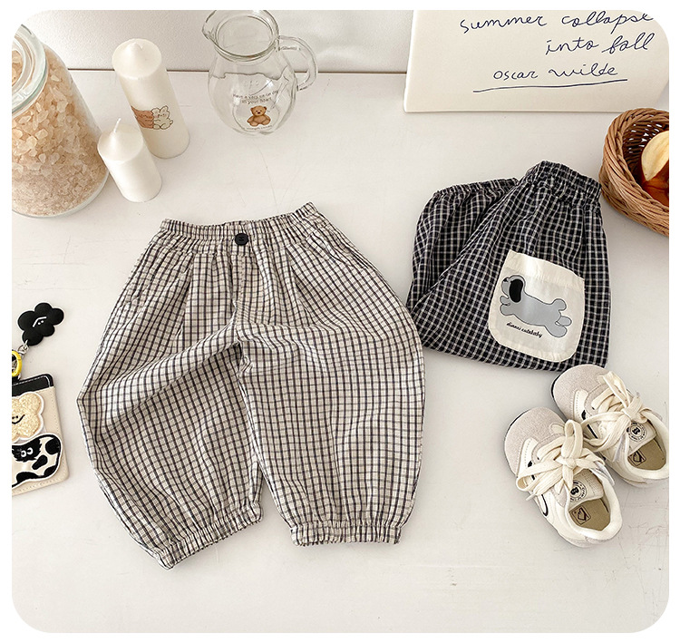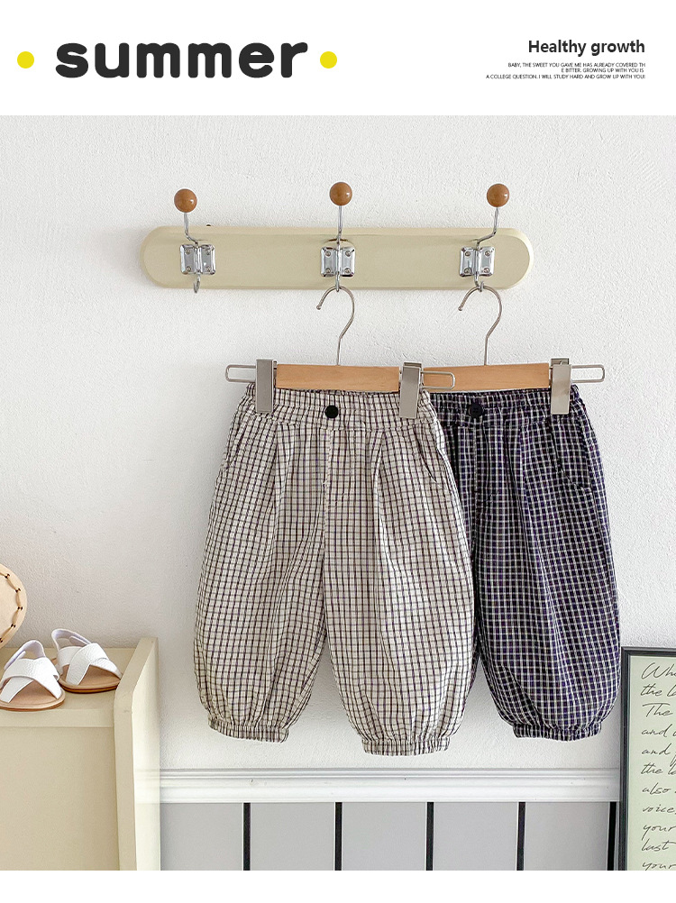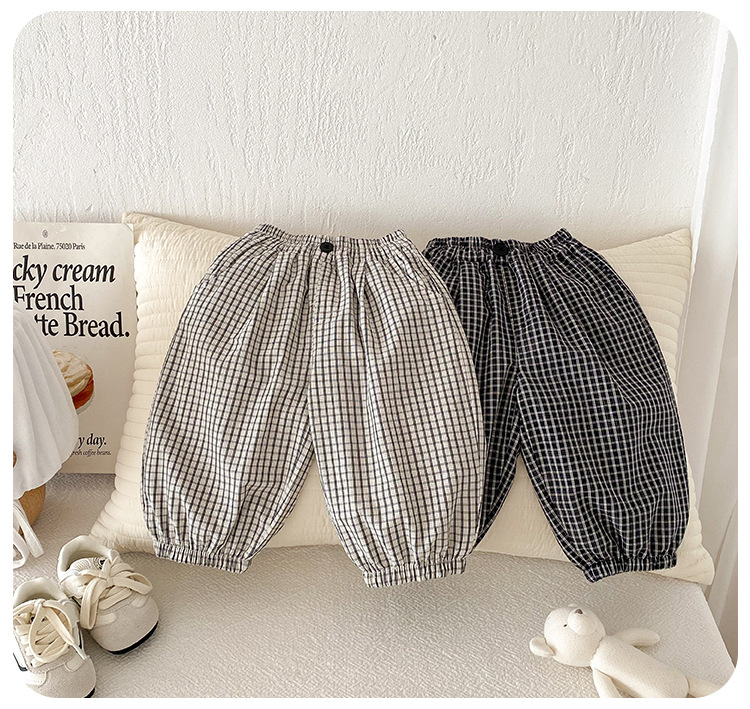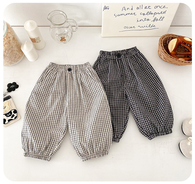 유아 바지 여름 새로운 서양식 격자 무늬 바지 얇은 느슨한 안티 모기 바지 캐주얼 발목 바지 올매치 한국식스토어 가기