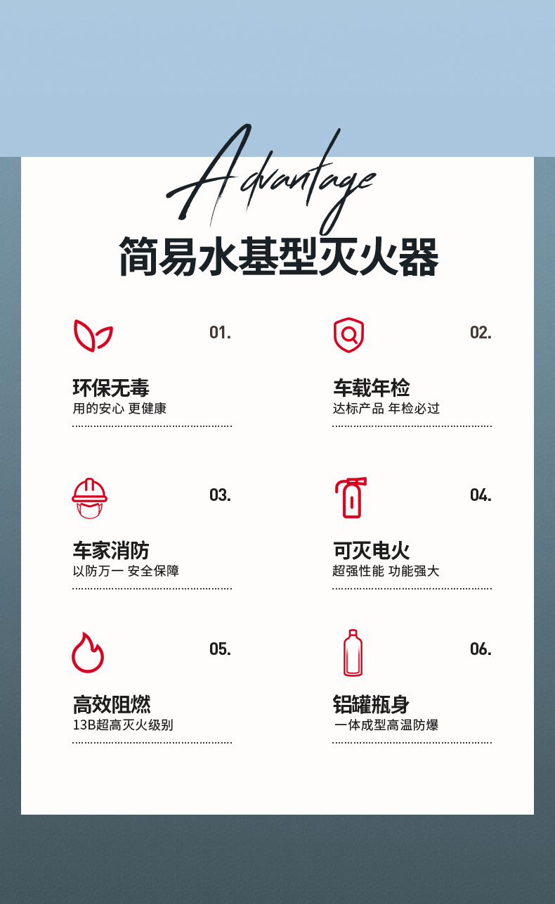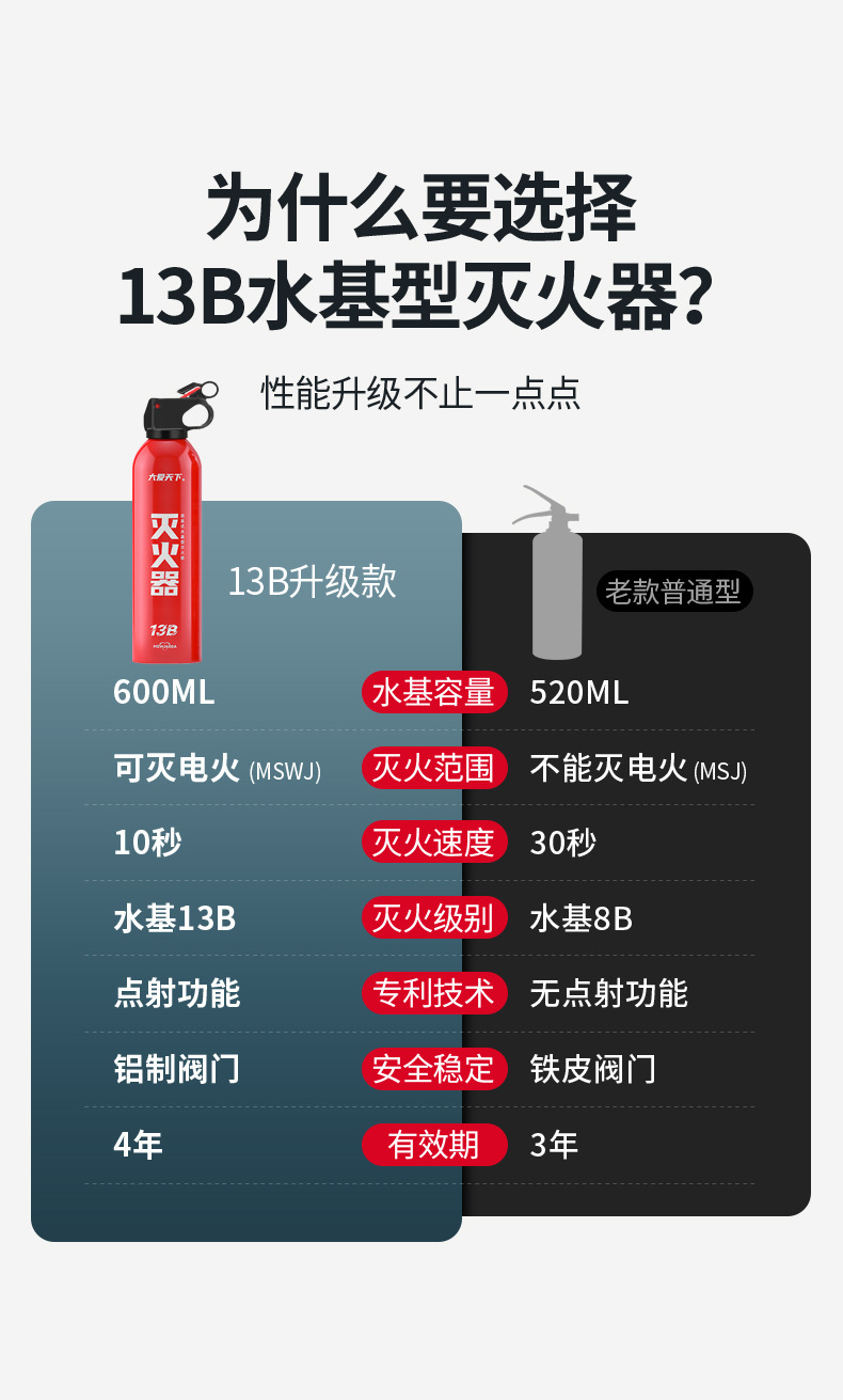 闪牧车载灭火器13B水基车用灭火器便携汽车年检消防器材可灭电火