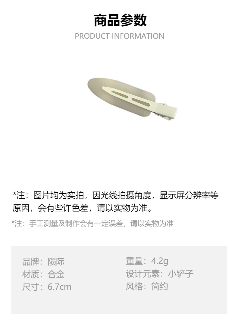 새로운 원활한 헤어 클립 작은 삽 컬러 젖빛 오리 지폐 클립 이마 사이드 앞머리 클립 클립 클립 클립 메이크업 클립 어린이